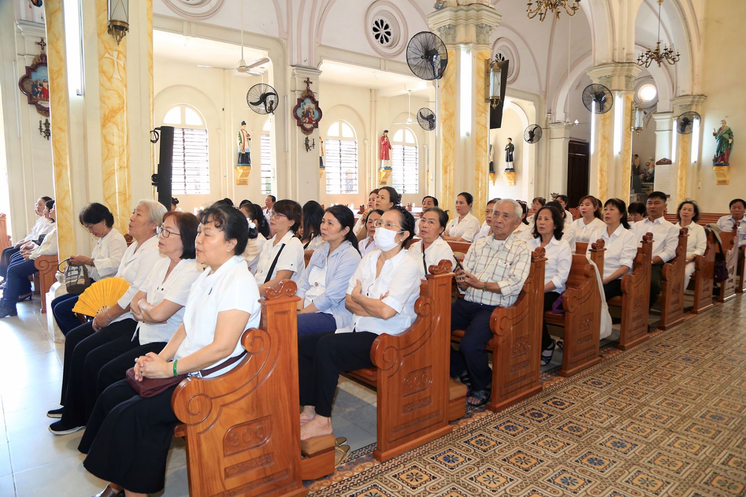 Sau phần đón tiếp và tìm hiểu lịch sử, đoàn chuẩn bị bước vào Thánh lễ.
