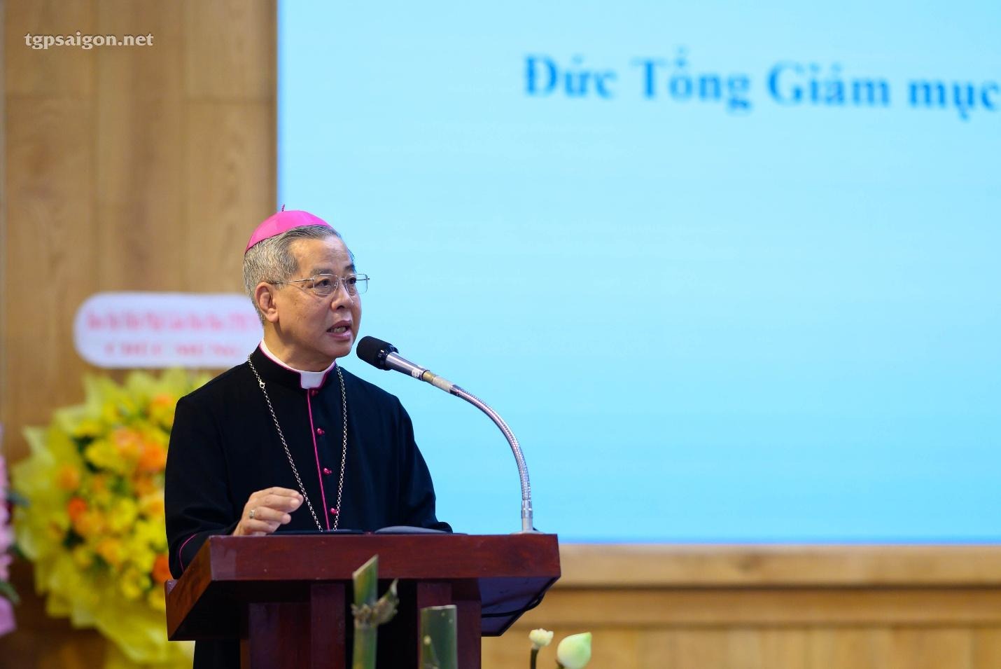 Ngài mở đầu bằng lời cảm ơn chân thành gửi đến Đức Tổng Giám mục Giuse Nguyễn Năng, Ban Giám đốc Trung tâm Mục vụ và các tôn giáo bạn đã cùng hiện diện trong bầu khí cảm thông và tôn trọng.