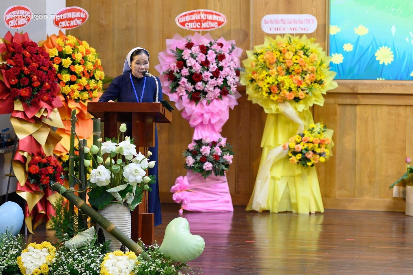 Trở lại hội trường, Nữ tu Anna Hồ Thị Hạnh (Giảng viên Tâm lý học) trình bày lộ trình “Hiệp tâm - từ chữa lành nội tâm đến hợp tác vì công ích”.