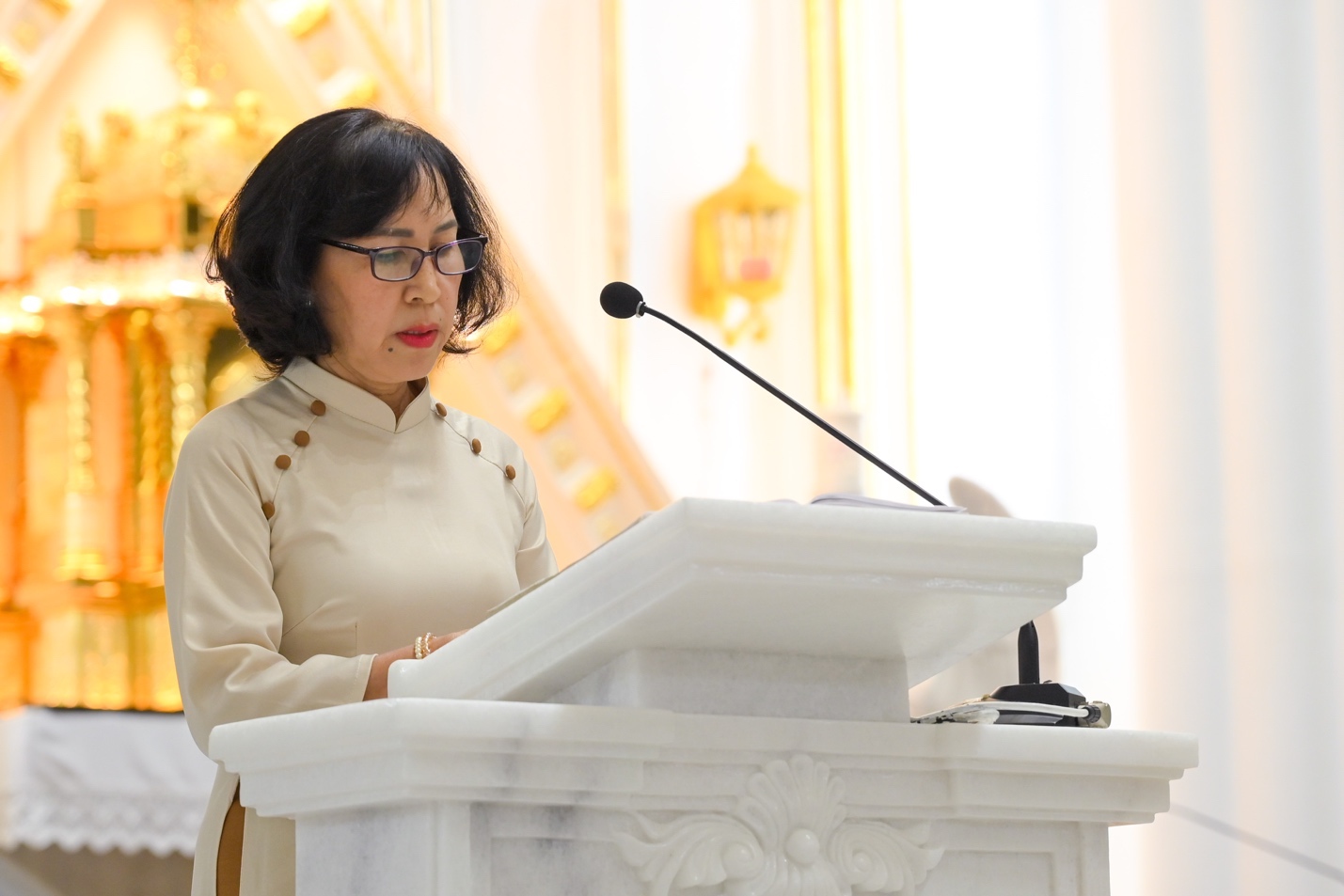 Thánh lễ được cử hành trong bầu khí trang nghiêm và sốt sắng với sự tham dự của đại diện Hội đồng Mục vụ giáo xứ, các đoàn thể, thành viên ca đoàn, ân nhân, phụ huynh, các anh chị cựu ca viên cùng cộng đoàn dân Chúa trong giáo xứ.