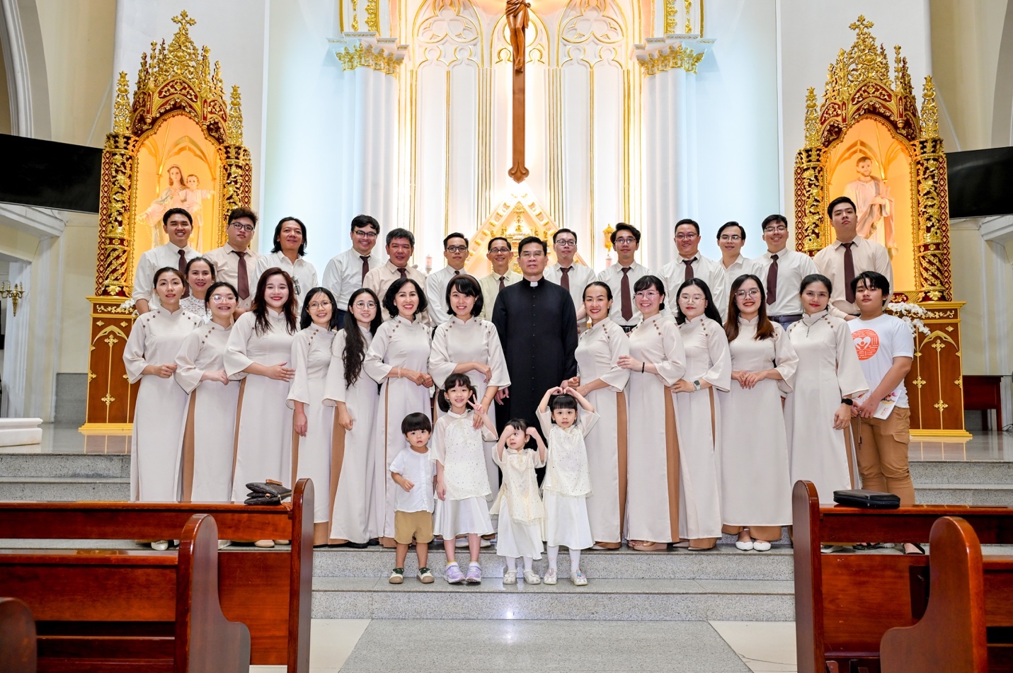 Cùng với Cha xứ Đa Minh, ca đoàn đã lưu lại hình ảnh kỷ niệm.