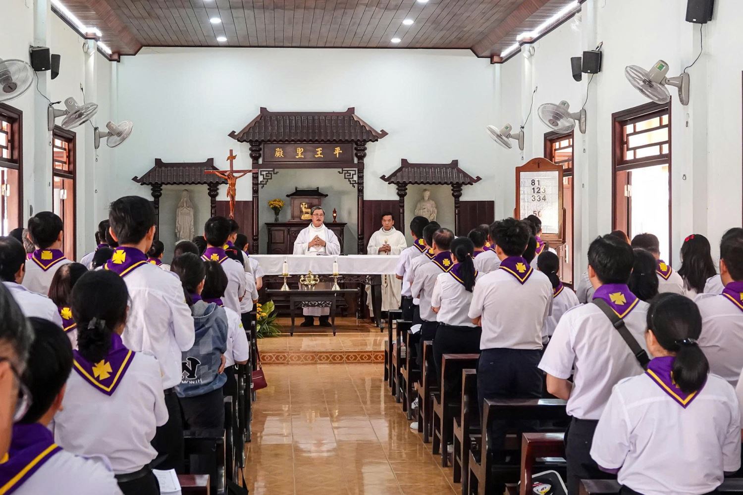 Sau nghi thức chào cờ, các SMS sốt sắng bước vào Thánh lễ.