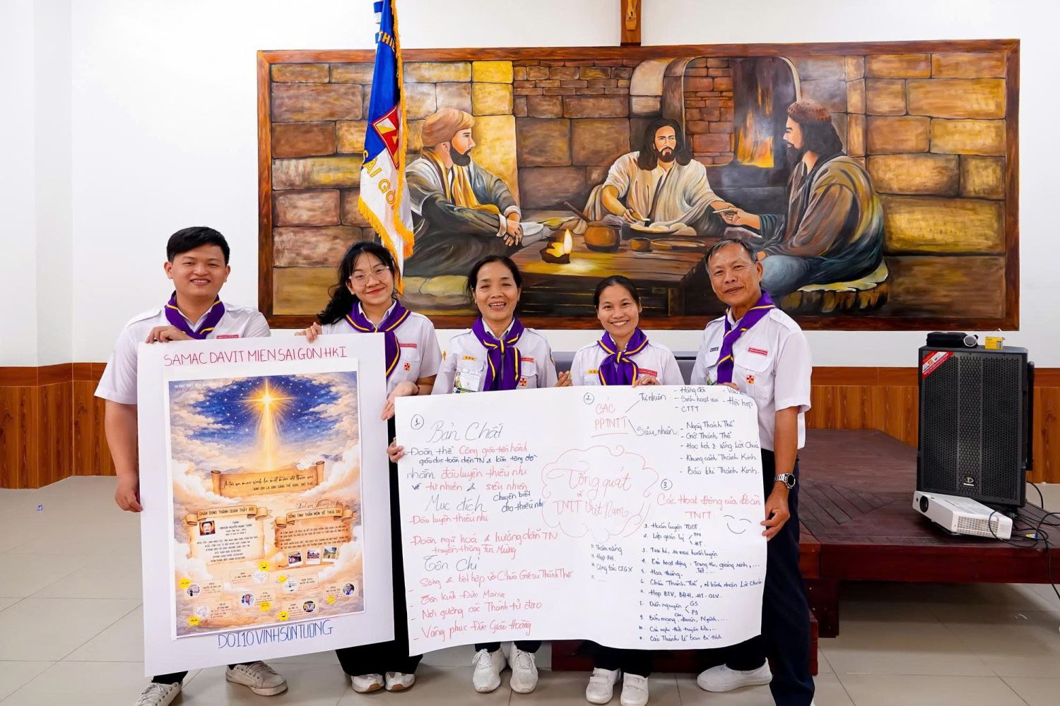 Nhớ lại những ngày đầu phân chia công tác, cả SMS và BĐH đều có chút bỡ ngỡ vì tất cả đều cùng làm việc, giao việc qua Zoom - dù hiện đại và tiện lợi nhưng vẫn thiếu đi sự tương tác trực tiếp. Thế nhưng, tất cả những lo lắng đó đã nhanh chóng tan biến khi mọi người thật sự gặp nhau. Từ những giờ cùng nhau làm việc, cùng ngồi học, cùng tập dợt cho các tiết mục Lửa thiêng Thánh Thể - đơn sơ thôi nhưng đầy ý nghĩa; đến những tấm Báo tường sinh động, dễ thương, mang đậm dấu ấn riêng của từng đội. Những khoảnh khắc làm bài thi, cùng sinh hoạt, cùng nhảy múa, cùng cười vang trời đã dần xóa đi khoảng cách vùng miền, để rồi tất cả mọi người trở nên gần nhau hơn lúc nào không hay.