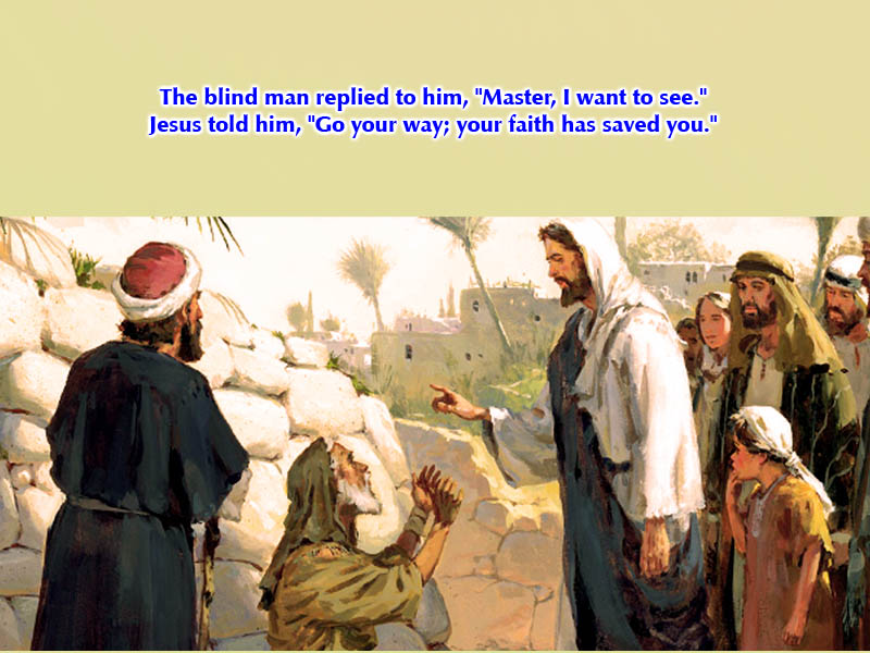 Không phải vô cớ mà có người nói: Cần phân biệt thị giác và thị lực! Quả thật, lắm khi các bộ phận của thị giác có đầy đủ nhưng người ta ‘nhìn’ mà vẫn không ‘thấy’, hoặc thị lực lại có vấn đề nên chỉ thấy những hình ảnh mập mờ, méo mó. Ngược lại có người mắt mù nhưng lại ‘thấy’ tinh tường hơn cả người sáng mắt, bởi vì họ nhìn với cả trí óc và con tim. Anh mù Batimê là một trong số những người đó: Anh ‘nhìn’ bằng đôi tai thay cho cặp mắt để nghe biết người đang đi qua đời anh “đó là Đức Giêsu Nadarét.” Và nhờ ‘cặp mắt đức tin’ anh ‘thấy’ Đức Giêsu Nadarét chính là “Con Vua Đavít” có quyền năng chữa lành anh. Được Chúa gọi tới, anh đã nói lên nỗi khao khát của anh: “Xin cho tôi được thấy.” Và Chúa đã đáp lời: “Đức tin của anh đã cứu chữa anh!”