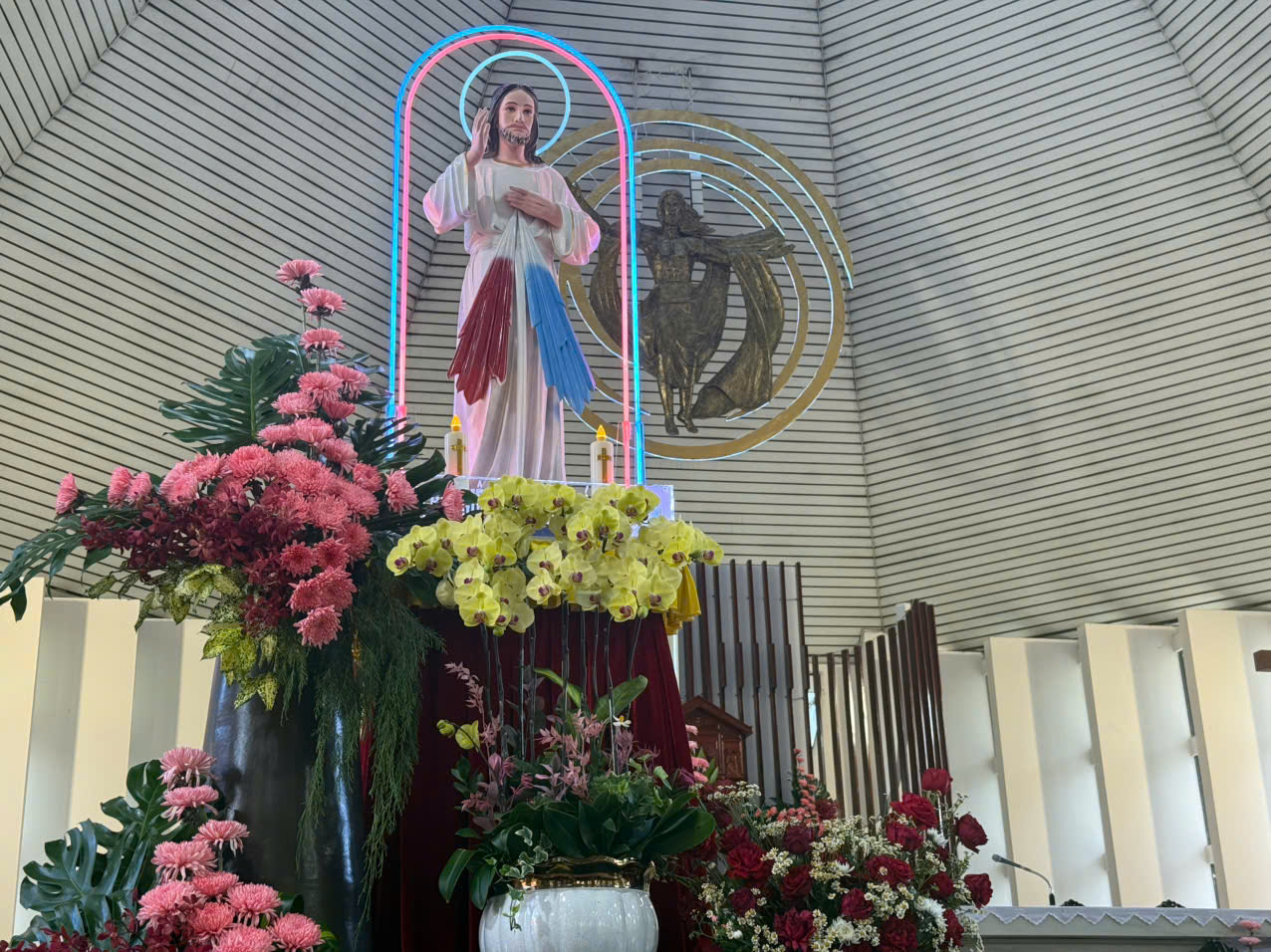 Hình ảnh Chúa Giêsu Phục Sinh hiện ra với các môn đệ, trao ban bình an, như được tái hiện trong chính giây phút này. Và lời “Bình an cho anh em” dường như không chỉ dành cho các môn đệ năm xưa, mà còn dành cho từng người hiện diện, kể cả những ai đang lần đầu bước vào ngôi thánh đường.
