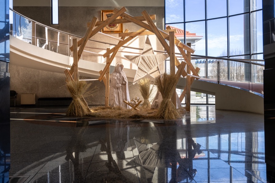 Một hang Giáng Sinh trong đại sảnh toà Thị chính mang tính nghệ thuật thôn dã