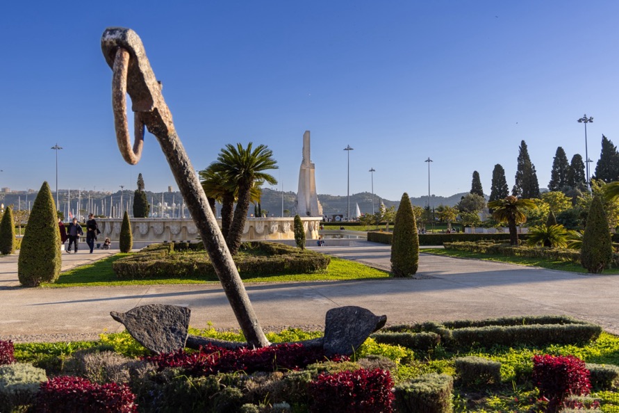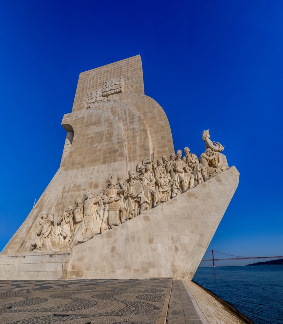 Tượng đài tả cảnh thuyền trưởng, thuỷ thủ và các nhà truyền giáo trên thuyền hướng ra cửa biển ở quảng trường cảng Praia do Restelo