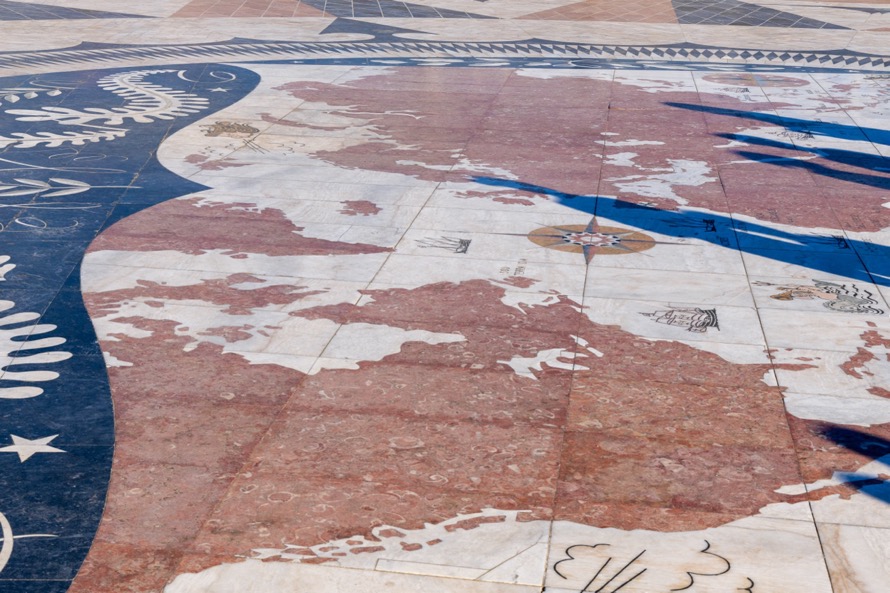 Sân quảng trường có một bản đồ thế giới ghi các nơi và năm các nhà thám hiểm và thương thuyền Bồ Đào Nha đi đến ở thế kỷ thứ 15, 16…