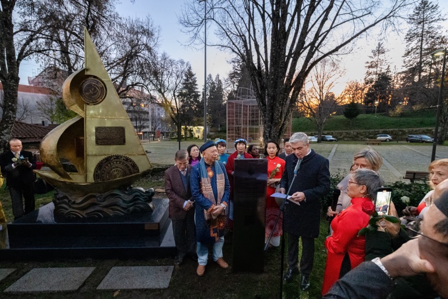 “….Vào ngày 26 tháng 11 năm 2023, một nhóm khoảng hai chục người Việt Nam - sử gia, nghệ sĩ, giáo viên, nhà thơ, nhà văn, nhà báo - hợp tác với Phòng Văn Hoá thành phố Guarda, đã khánh thành tượng đài cha Francisco de Pina SJ trong vườn thư viện thành phố Guarda. Một tượng đài bằng đồng, hình chiếc thuyền buồm cao ba mét đi dưới sóng biển, được hoàn thành, thiết kế và tạo ra ở Việt Nam như một dấu hiệu ghi nhận vị linh mục Dòng Tên, người vẫn còn là một sinh viên trẻ 21 tuổi, đã rời bỏ quê hương Thành phố Giáng sinh hơn bốn trăm năm trước, không bao giờ trở lại đây nữa. Là một nhà truyền giáo và nhà ngôn ngữ học ở Đàng Trong vào thời điểm đó, giờ đây ông đã trở lại nhận vai trò tôn vinh của người Việt, giống như người ta đã khiêng ông đến mộ trong nước mắt khi ông qua đời ở đó, trong một vụ đắm tàu, gần bốn thế kỷ trước. Đó là ngày 15 tháng 12 năm 1625. Và thành quả lao động của ông vẫn còn đó, tại Đàng Trong ngày xưa, để những người khác tiếp tục và phát triển. Tiếp tục với nền tảng của Giáo hội Việt Nam và ngôn ngữ học, như lịch sử đã chứng minh…”