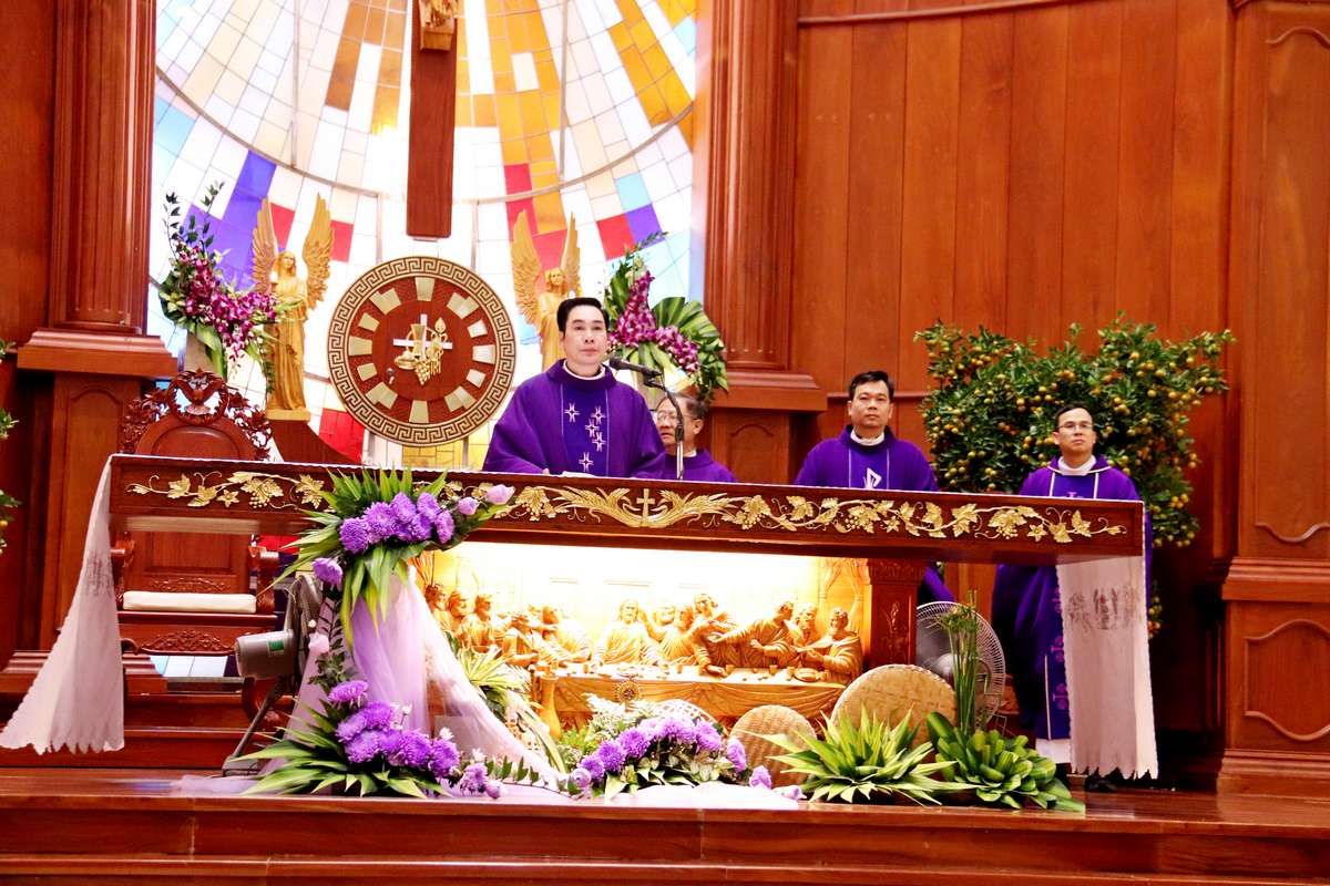Thánh lễ do Lm chánh xứ Giuse Lê Ngọc Đa chủ tế. Đồng tế với ngài có Lm Hạt trưởng Gioan B. Vũ Mạnh Hùng, Lm phó xứ Giuse Nguyễn Trung Tín, cùng các linh mục Dòng Tông Đồ Cầu Nguyện cho ơn gọi.
