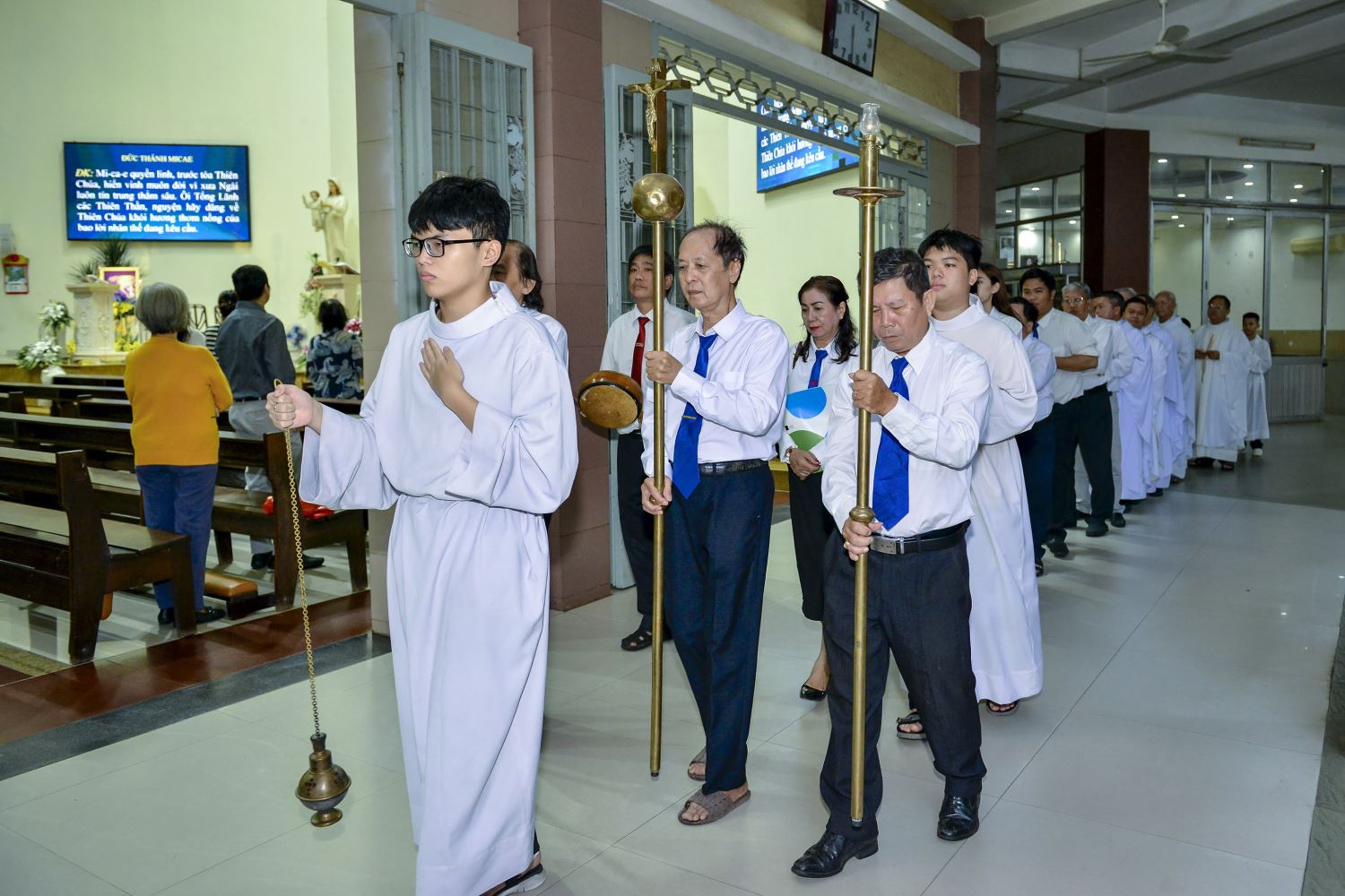 Thánh lễ khởi sự với đoàn rước bên cánh phái nhà thờ tiến vào cung thánh.