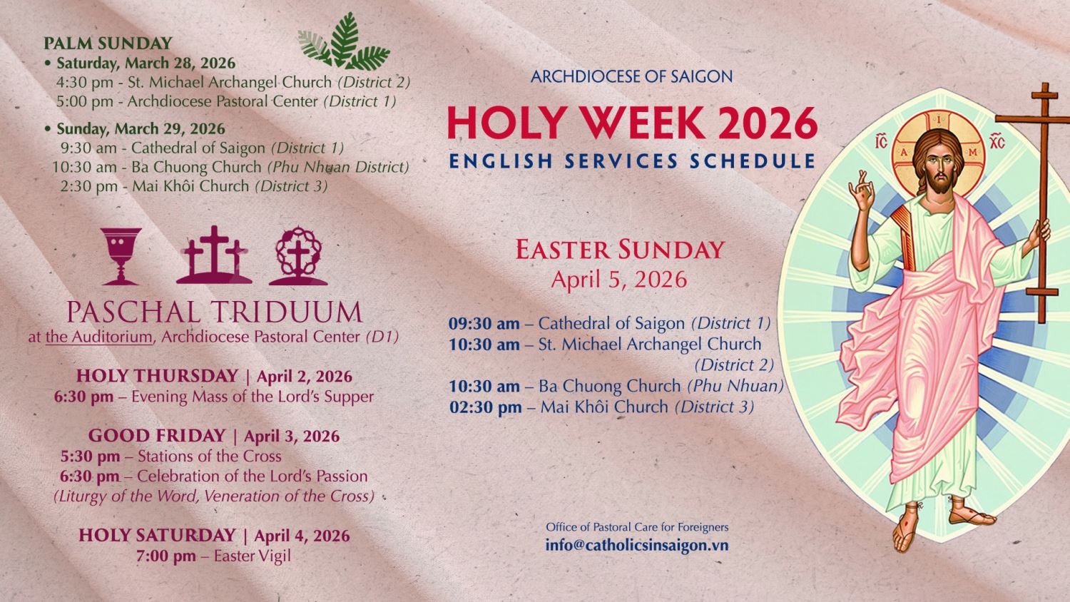 Lịch Phụng vụ Tuần Thánh và Phục sinh 2026 của các cộng đoàn nước ngoài | Paschal Triduum and Easter 2026 Schedule for the Expat Communities