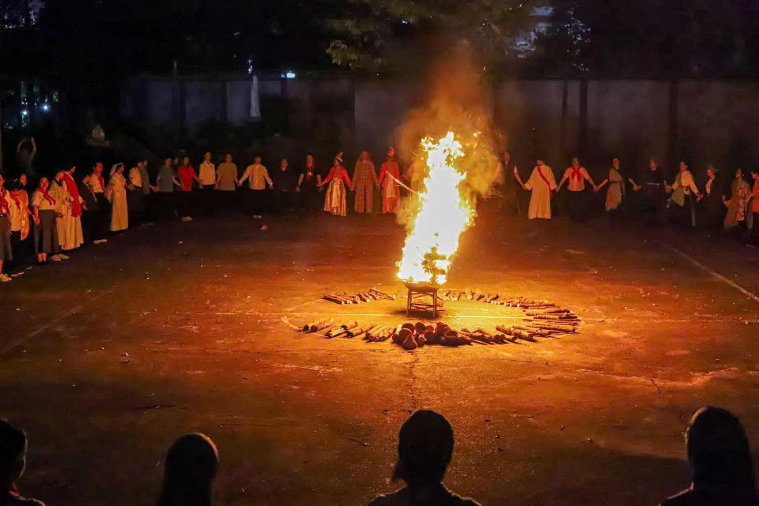 Kết thúc đêm Lửa Thiêng là giây phút lắng đọng: “Mang Lửa Về Tim”. Các đội trưởng lên nhận lửa từ ngọn lửa thiêng để thắp cho đội mình. Các SMS cầm nến sáng trong tay, trở về góc đội, cùng nguyện xin Chúa – suối nguồn tình yêu – xua tan những góc khuất lạnh lẽo trong tâm hồn mỗi người, và biến đổi bản thân để thật sự trở nên ánh sáng thế gian như lòng Chúa mong ước.