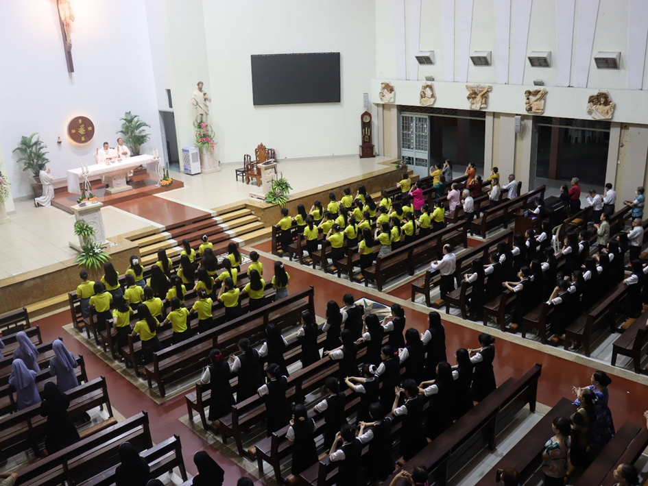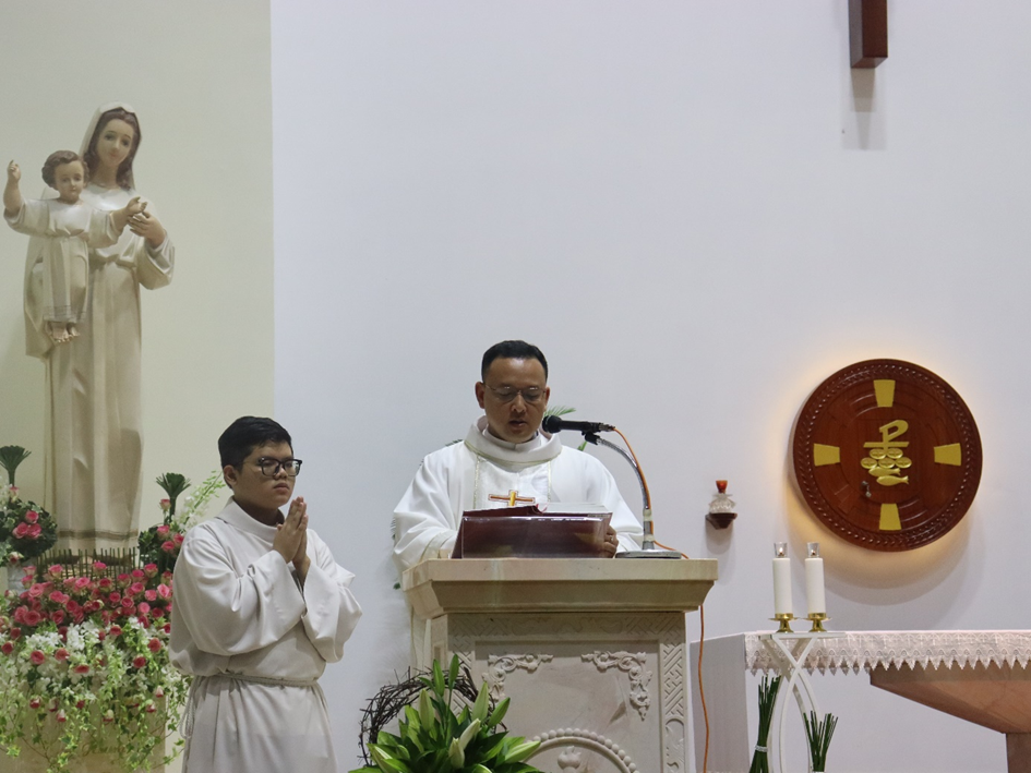 Ngỏ lời đầu Thánh lễ, Linh mục chánh xứ mời gọi các em luôn cảm nghiệm niềm vui và gặt hái những thành quả tốt đẹp trong năm học, đồng thời phó dâng hành trình học tập phía trước cho Thiên Chúa.