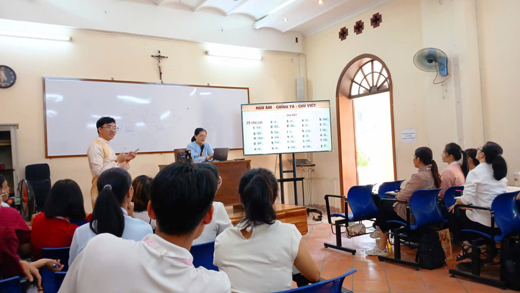 Ngay phần mở đầu, nữ tu Têrêsa nhắn nhủ nhẹ nhàng mà sâu sắc rằng mục tiêu của lớp là “Lời đẹp”, bởi một lời đẹp không chỉ khiến người nghe cảm phục, mà còn là lời được dâng lên Chúa. Với tinh thần đó, nữ tu dẫn dắt học viên bước vào hành trình khám phá tiếng Việt - một kho báu ngôn ngữ mà mỗi người dẫn chương trình Công giáo cần biết trân trọng.