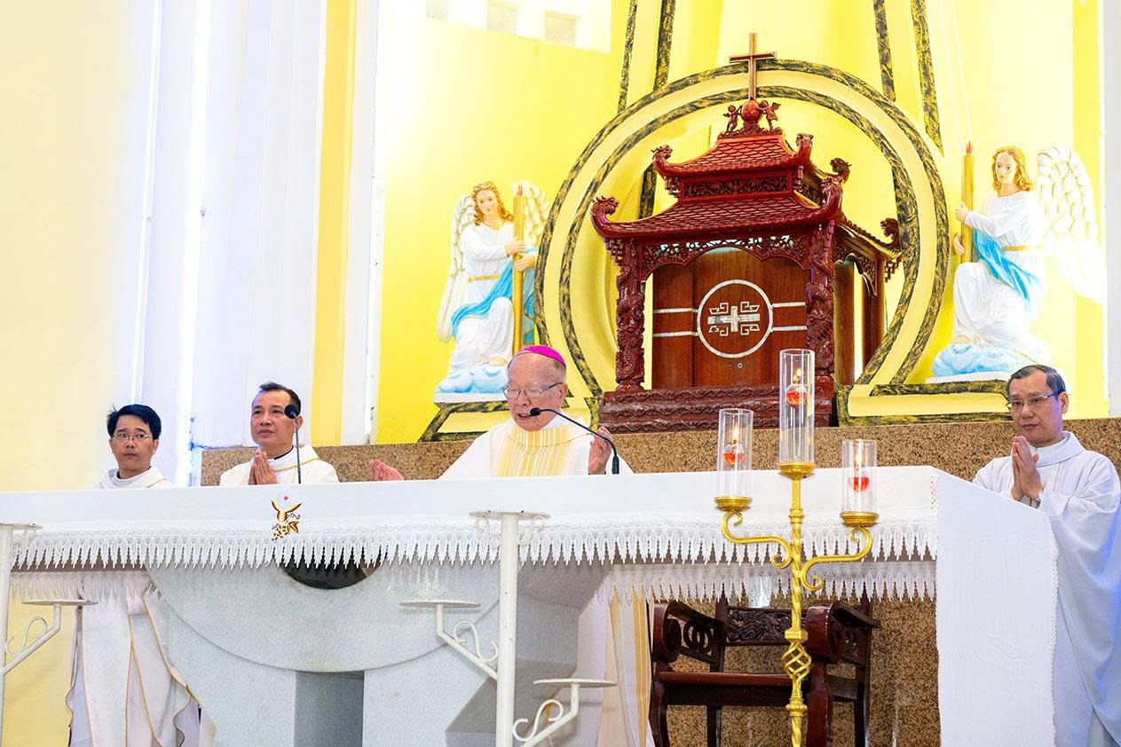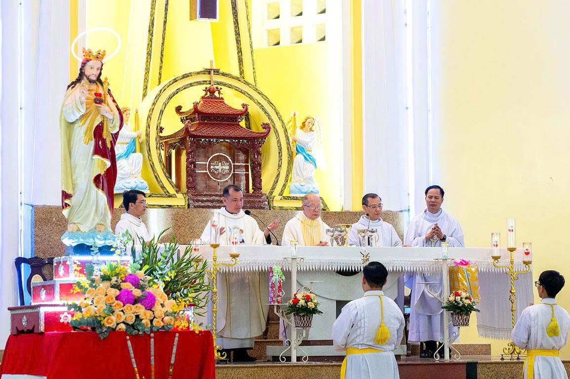Đồng tế với ngài có linh mục chánh xứ Gioan Baotixita Nguyễn Ngọc Tân, linh mục phó xứ Đaminh Nguyễn Tuấn Lộc và tám linh mục thân quen.
