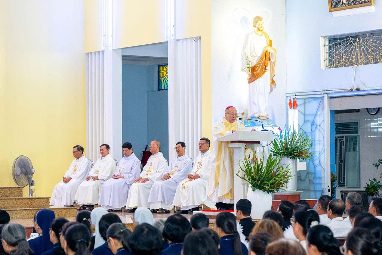 Đức cha Antôn Vũ Huy Chương, nguyên Giám mục Chính Tòa Đà Lạt, đã nhấn mạnh như trên khi chủ tế Thánh lễ Chúa Kitô Vua Vũ Trụ, mừng bổn mạng giáo xứ, được cử hành trọng thể lúc 17g ngày 22.11.2025 tại nhà thờ An Lạc.