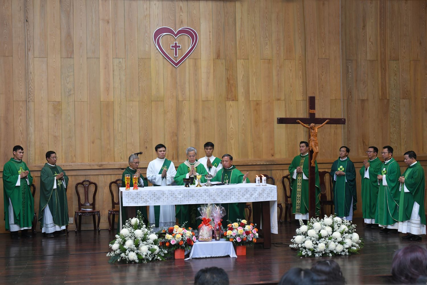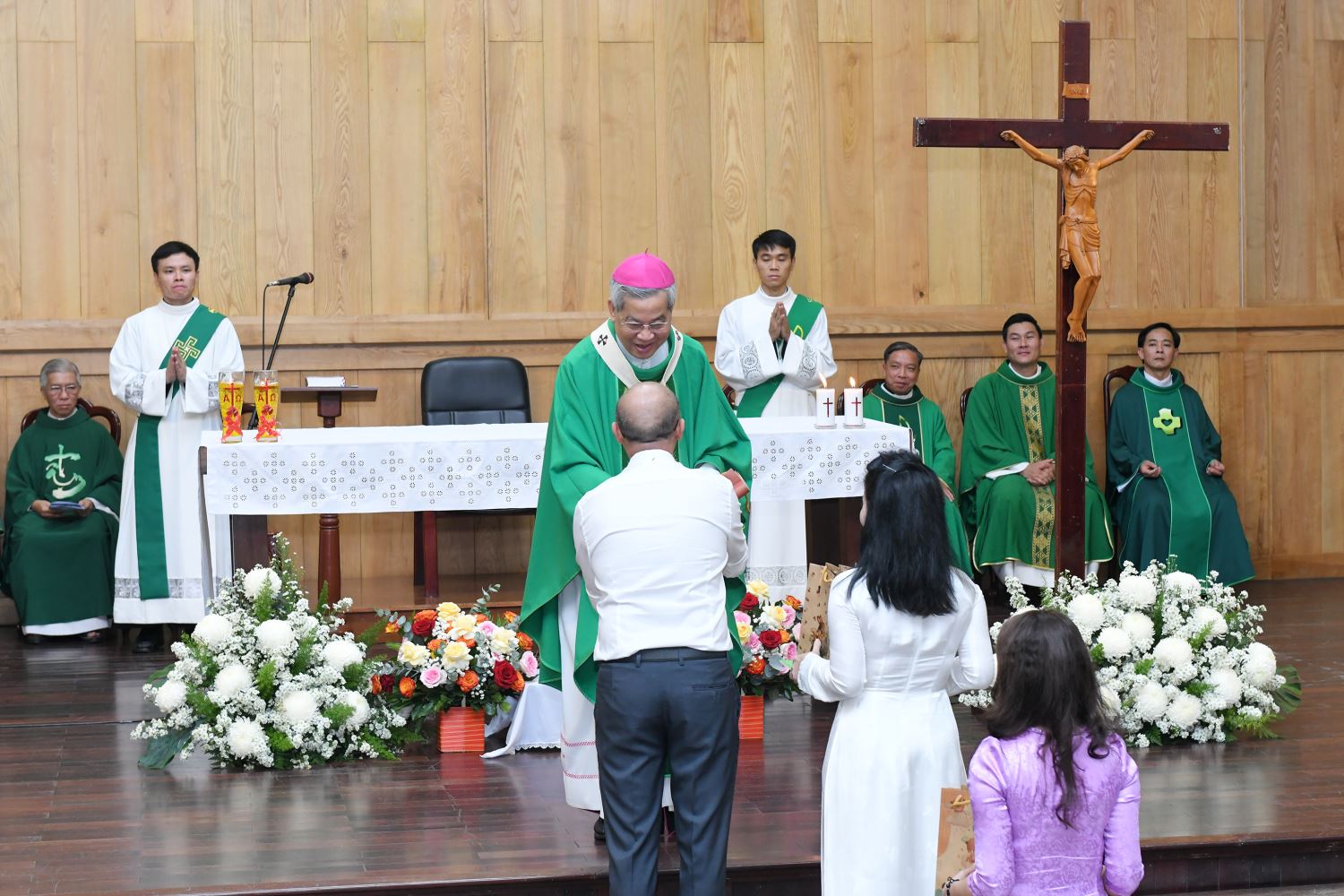 Đồng tế với Đức Tổng Giám mục có linh mục Phanxicô Xaviê Bảo Lộc - Giám đốc Trung tâm Mục vụ; linh mục Gioan Baotixita Nguyễn Quang Tuyến - Linh hướng Phong trào Cursillo TGP Sài Gòn, cùng 11 linh mục linh hướng khác.