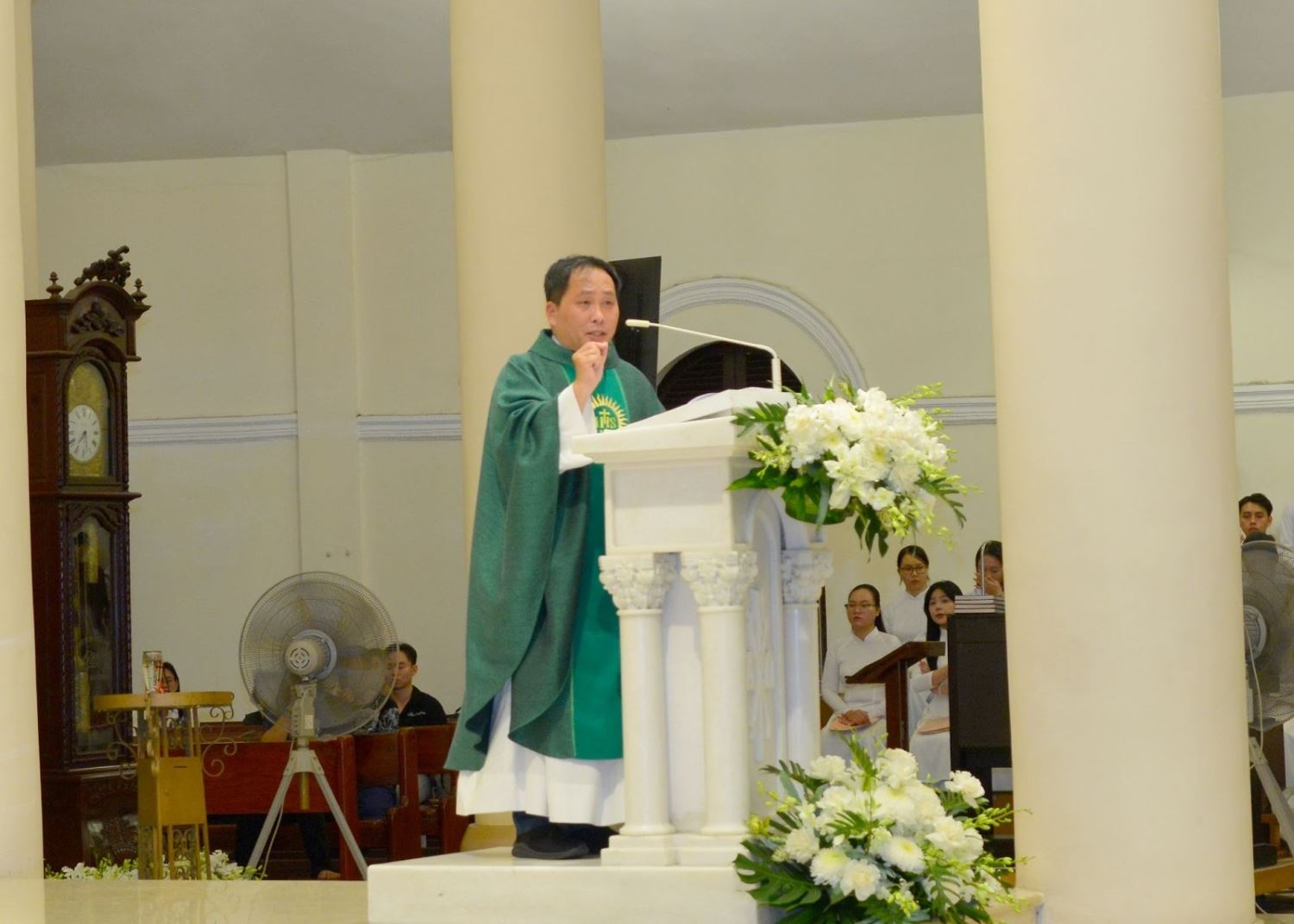 Đúng 19:00, Thánh lễ hiệp thông với ý chỉ của Đức Giáo Hoàng được cử hành do cha Tôma Vũ Ngọc Tín, S.J. chủ tế, cha Giuse Bùi Quang Minh, S.J. đồng tế. Trong bài giảng, cha Giuse đã dẫn cộng đoàn trở lại với hình ảnh quen thuộc trong Tin Mừng: tiếng kêu của Phêrô giữa sóng gió – “Thầy ơi, cứu con!” Dù sợ hãi, nhưng Phêrô vẫn kêu cứu bằng niềm tin vào Đấng có thể kéo ông ra khỏi vực sâu. Nếu đặt trong bối cảnh ý chỉ tháng 11, Phêrô hôm ấy trở thành biểu tượng của những ai đang vật lộn với bão tố nội tâm, với cảm giác lạc lối hay kiệt quệ – nhưng vẫn còn đủ hy vọng để ngước nhìn lên Chúa.