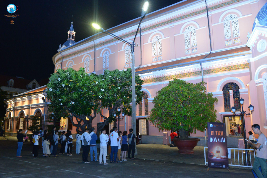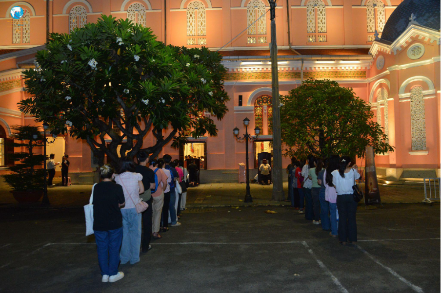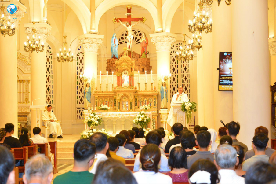 Hòa cùng nhịp cầu nguyện đó, tối ngày 5.9.2025, Mạng lưới Cầu nguyện Toàn cầu của Đức Giáo hoàng tại Việt Nam đã tổ chức “Ngày Thánh Thể Tháng 9” tại Nhà thờ Tân Định. Đông đảo cộng đoàn đã quy tụ về ngôi thánh đường cổ kính để chiêm ngắm và tôn thờ Chúa Giêsu Thánh Thể, và cũng để cùng nhau sống mối hiệp thông thiêng liêng với Thánh Tâm Chúa Giêsu – nguồn mạch của tình yêu và lòng thương xót.