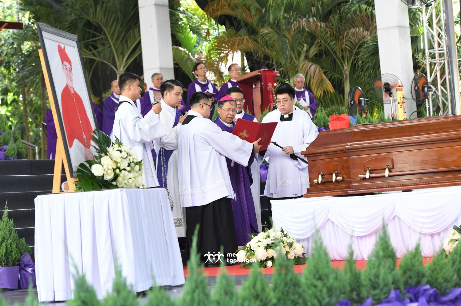 Đức Tổng Giám mục Giuse Nguyễn Năng đã chủ sự Thánh lễ an táng, cùng với hơn 500 linh mục đồng tế và khoảng 5.000 người tham dự.