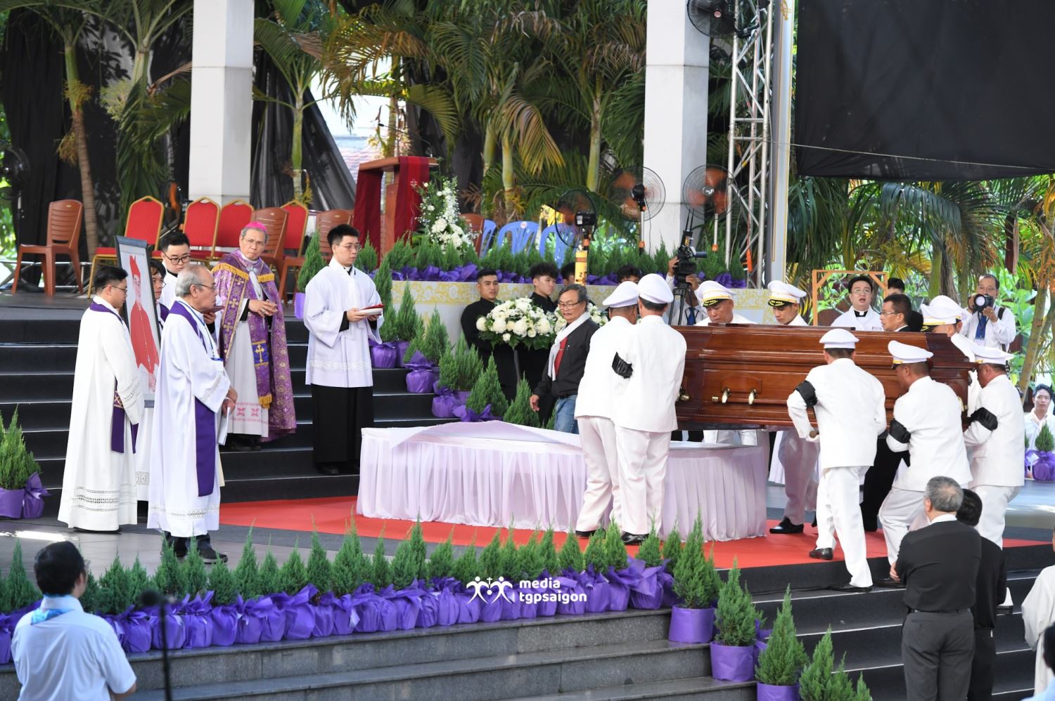 Sau đó, linh cữu của Đức cố Hồng y đã được đưa ra lễ đài, nơi Thánh lễ an táng của ngài được cử hành.