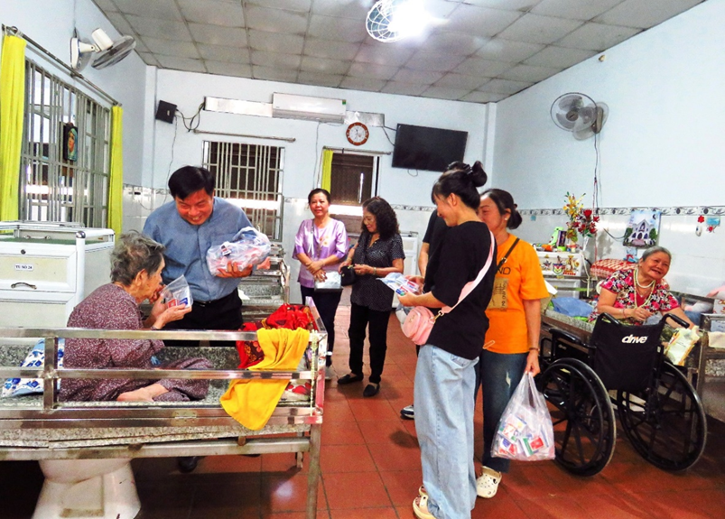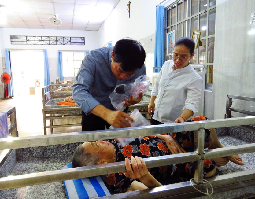 Được biết, Nhà Bác ái Nhân Nghĩa hiện có 12 nữ tu đang chăm sóc 45 cụ bà, độ tuổi từ trên 50 đến hơn 90. Trong đó, khoảng hai phần ba các cụ đang trong tình trạng nằm liệt giường. Khi đoàn đến thăm, có một cụ đang hấp hối được cha đến xức dầu, sau đó sức khỏe dần hồi tỉnh.