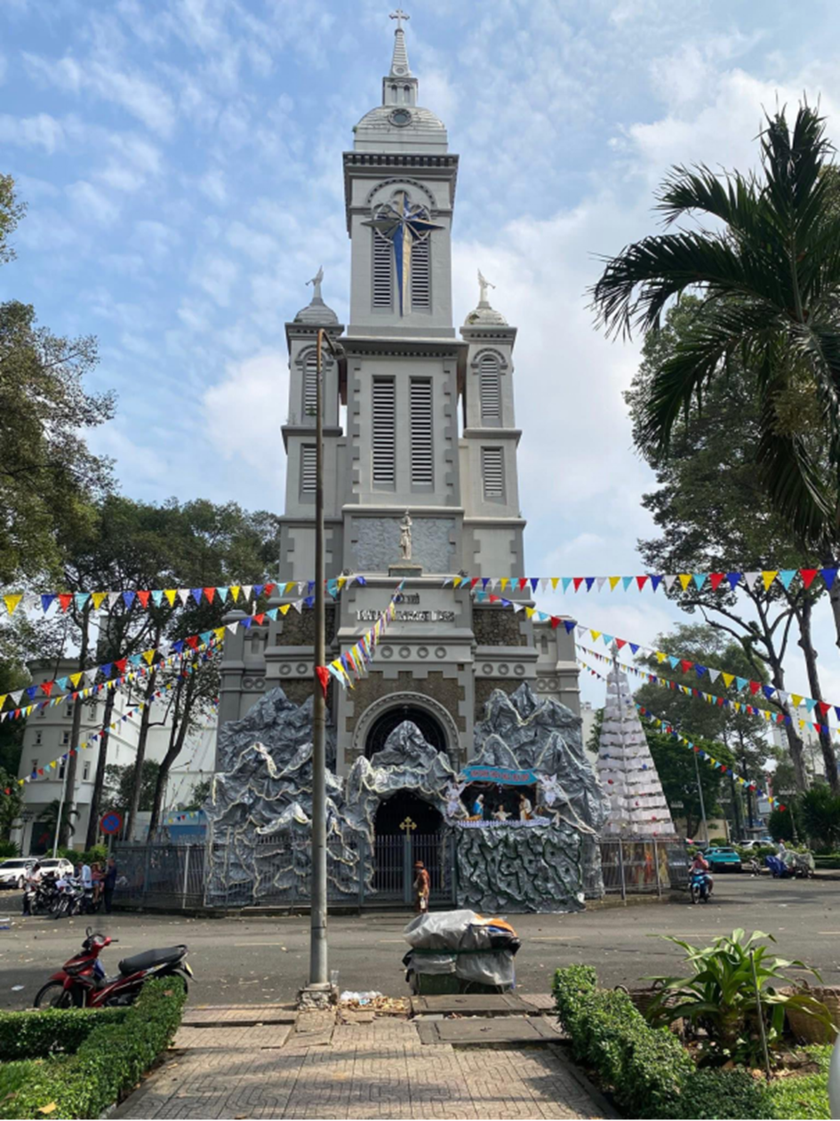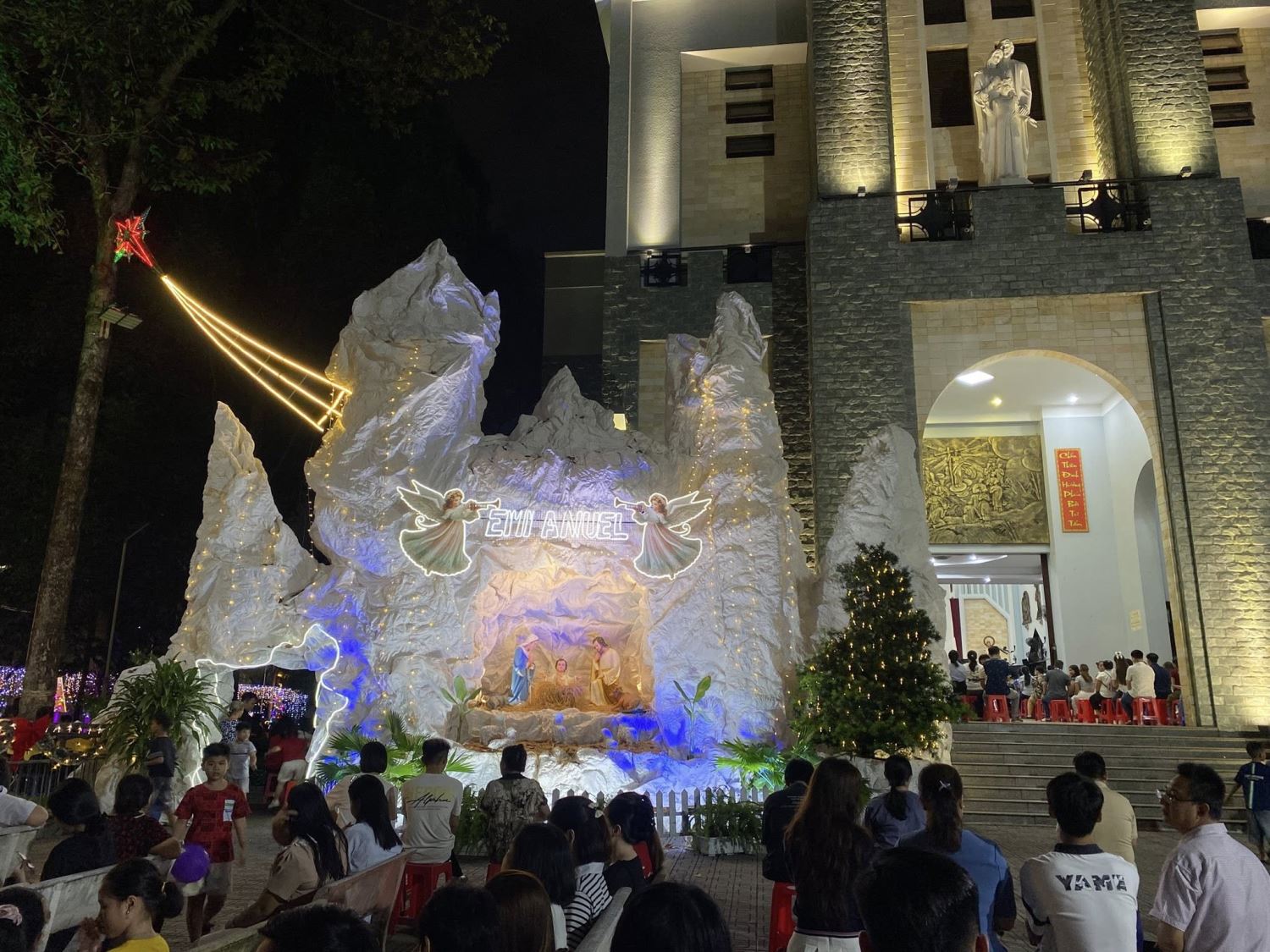 Ngôi nhà thờ cao vút, nằm ở khu vực “đất vàng” của Chợ Lớn sầm uất. Hang đá lớn trước cửa với Chúa Giêsu và Thánh Giuse, Đức Mẹ ngay trung tâm. Khung cảnh và trang trí Giáng Sinh làm cho người đi ngang cũng cảm nhận được mùa lễ đang về.