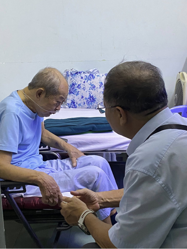 Chúng tôi cũng tháp tùng cha quản hạt Phú Thọ,Gioan B. Vũ Mạnh Hùng, hạt trưởng đến thăm cha cố Giuse Maria Trần Chí Nguyện - ngài nghỉ dưỡng tại gia đình đã 10 năm và những ngày gần đây sức khỏe yếu hơn.