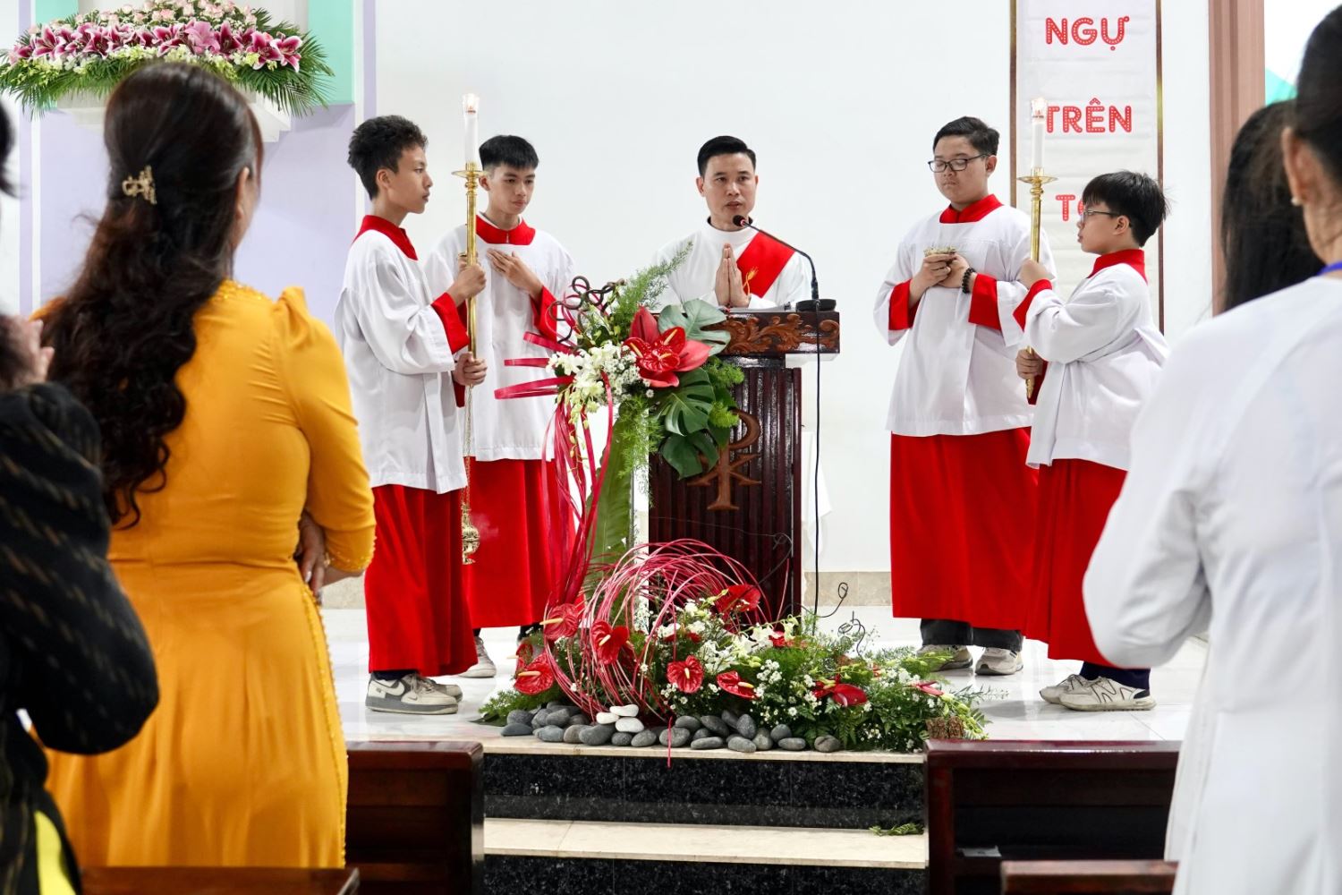 Thánh lễ được cử hành vào lúc 19g00 ngày Chúa Nhật 08.06.2025, Lễ Chúa Thánh Thần hiện xuống. Chủ tế là linh mục Phó Gioakim Đỗ Bá Thái, phụ lễ là Thầy phó tế Phêrô Nguyễn Thái Sơn (MSV) cùng với sự hiện diện của 31 anh chị em lãnh nhận Bí tích, Cha Mẹ đỡ đầu, người thân bạn hữu, các thầy cô giáo lý viên và đông đảo giáo dân đã đồng hành với các tân tòng trong khoảnh khắc thiêng liêng hôm nay.