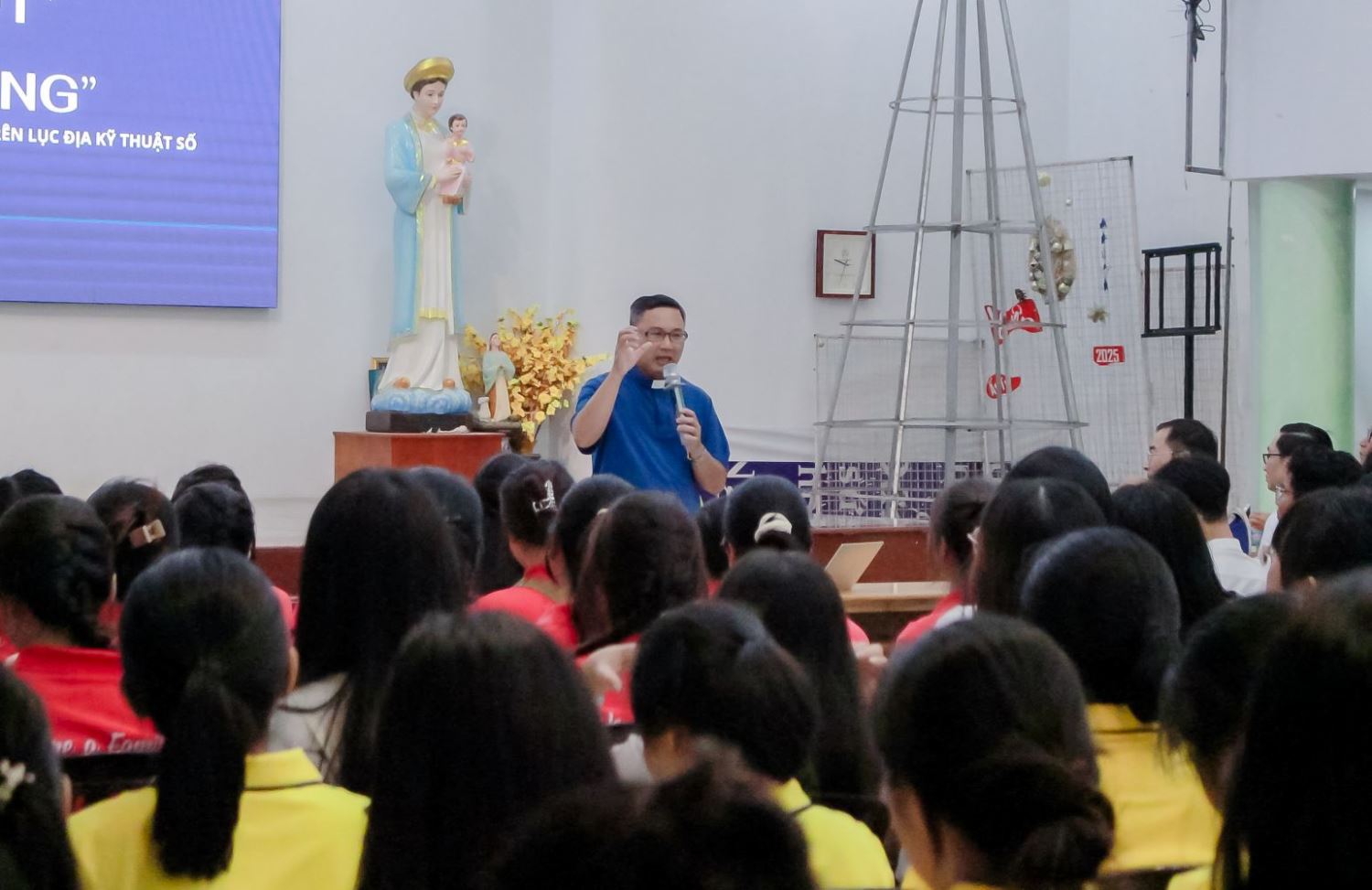 Trước phần Thánh lễ, các bạn sinh viên đã có cơ hội tham dự chuyên đề đặc biệt mang tựa đề “Từ Lướt đến Sống” do Cha Micae Ru-a Trần Phạm Hoàng Gia Thi, SDB - tu sĩ Dòng Salêdiêng Don Bosco, hiện là Cha Phó Giám đốc của Cộng thể Tiền Tập Saviô Cầu Bông, và cũng là Thạc sĩ Thần học Truyền thông - trực tiếp chia sẻ.