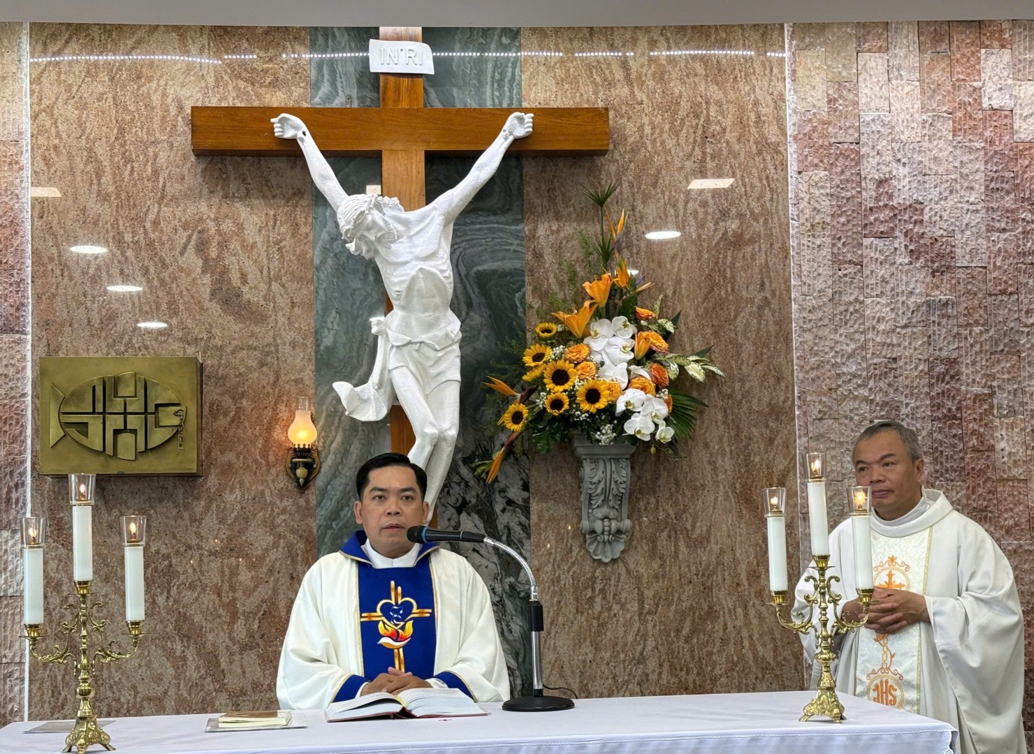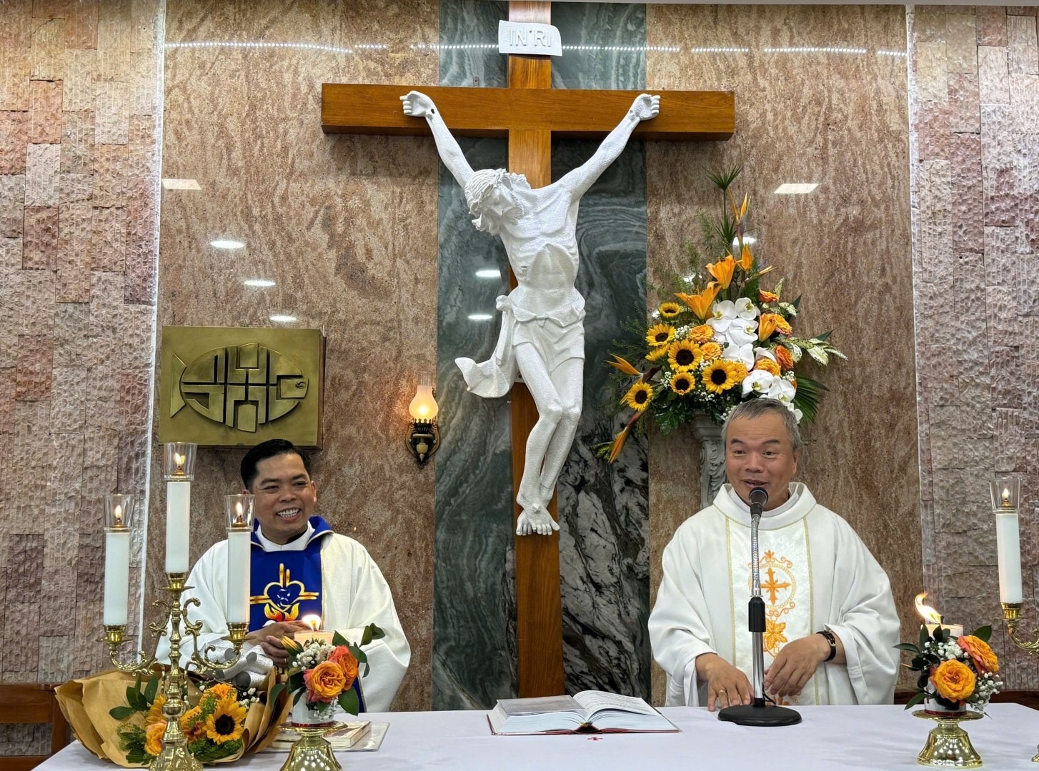 Đáp lời, Lm Bề trên Dòng Mẹ Lên Trời - Phanxicô Xaviê chia sẻ: “Khi làm thầy, con đã ở nơi khu vực Văn Hiến này, con rất vui khi được các cha của giáo xứ luôn đón nhận và cho con được phục vụ, con thấy ngôi Nguyện đường này tuy nhỏ bé nhưng rất ấm cúng và đã được sửa sang lại rất đẹp...”.