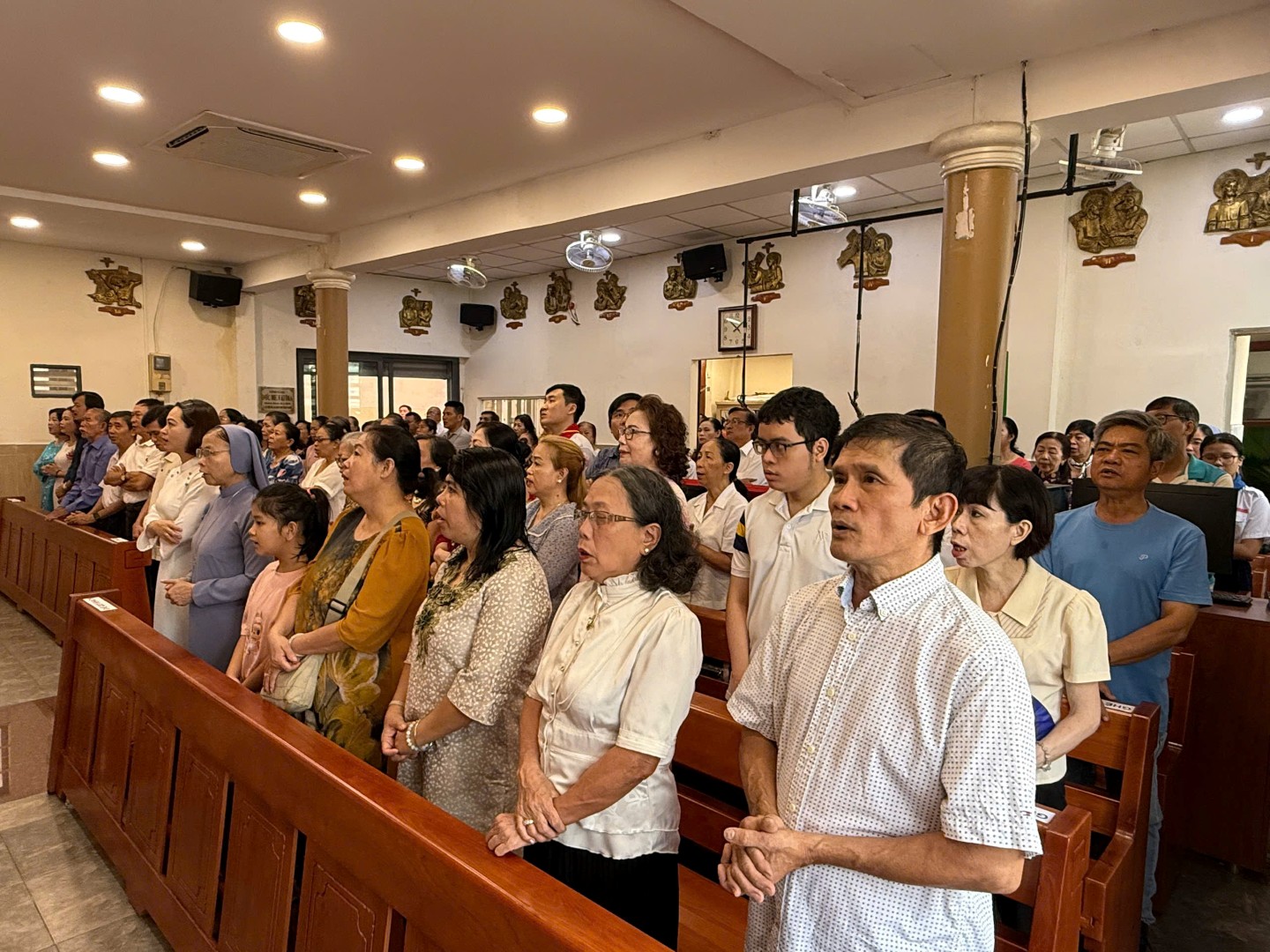 Giữa bầu trời trong xanh nắng đẹp, cộng đoàn dân Chúa giáo xứ Thánh Gia hân hoan tề tựu về nguyện đường giáo họ Fatima để dâng Thánh lễ, do Cha quản nhiệm Savio chủ tế. Đồng tế với ngài có Cha Phanxicô Xaviê Nguyễn Tiến Dưng - Bề trên Dòng Mẹ Lên Trời.