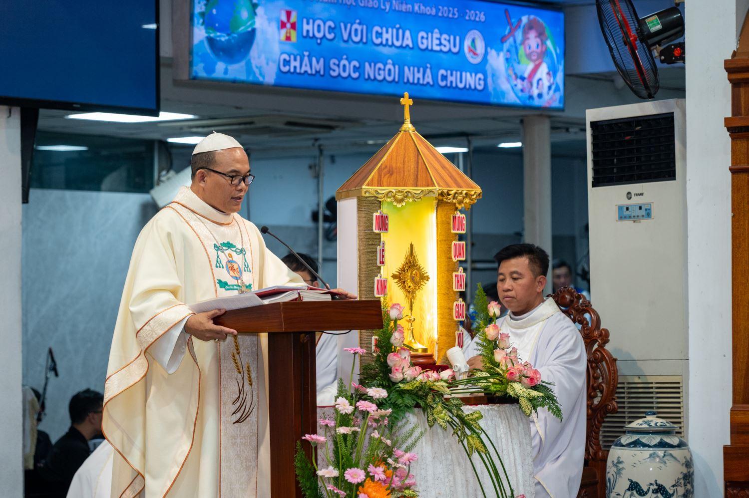 Thánh lễ được tiếp nối với phần Phụng vụ Thánh Thể và kết thúc lúc 18g30 trong bầu khí trang nghiêm, thắm đượm tình hiệp thông.