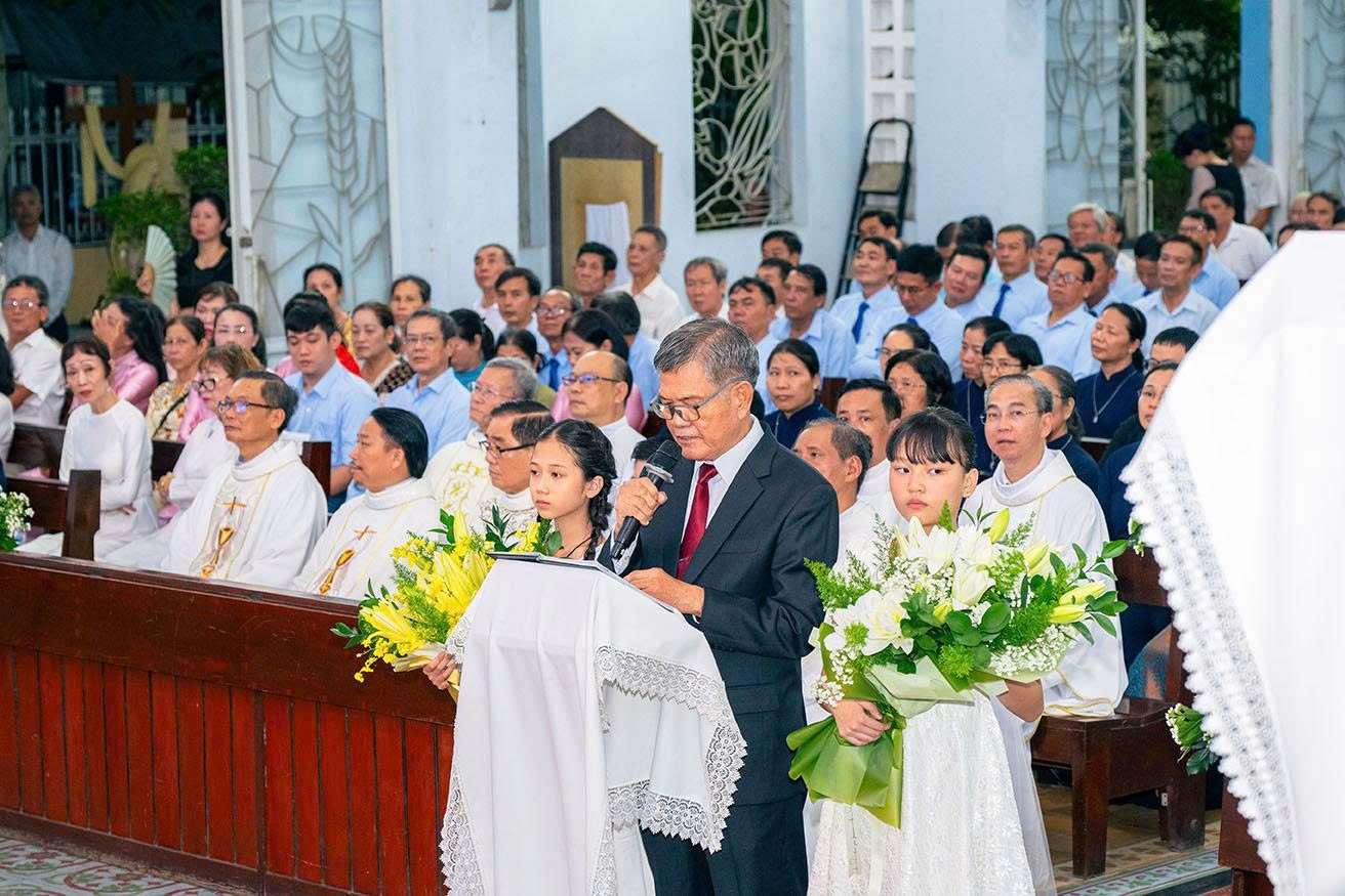 Sau lời nguyện hiệp lễ, ông Chủ tịch Hội đồng Mục vụ giáo xứ đã dâng lời cảm ơn đến Đức cha Phụ tá Giuse, các linh mục và mọi người đã hiệp dâng Thánh lễ cầu nguyện cho giáo xứ trong ngày nhậm chức.