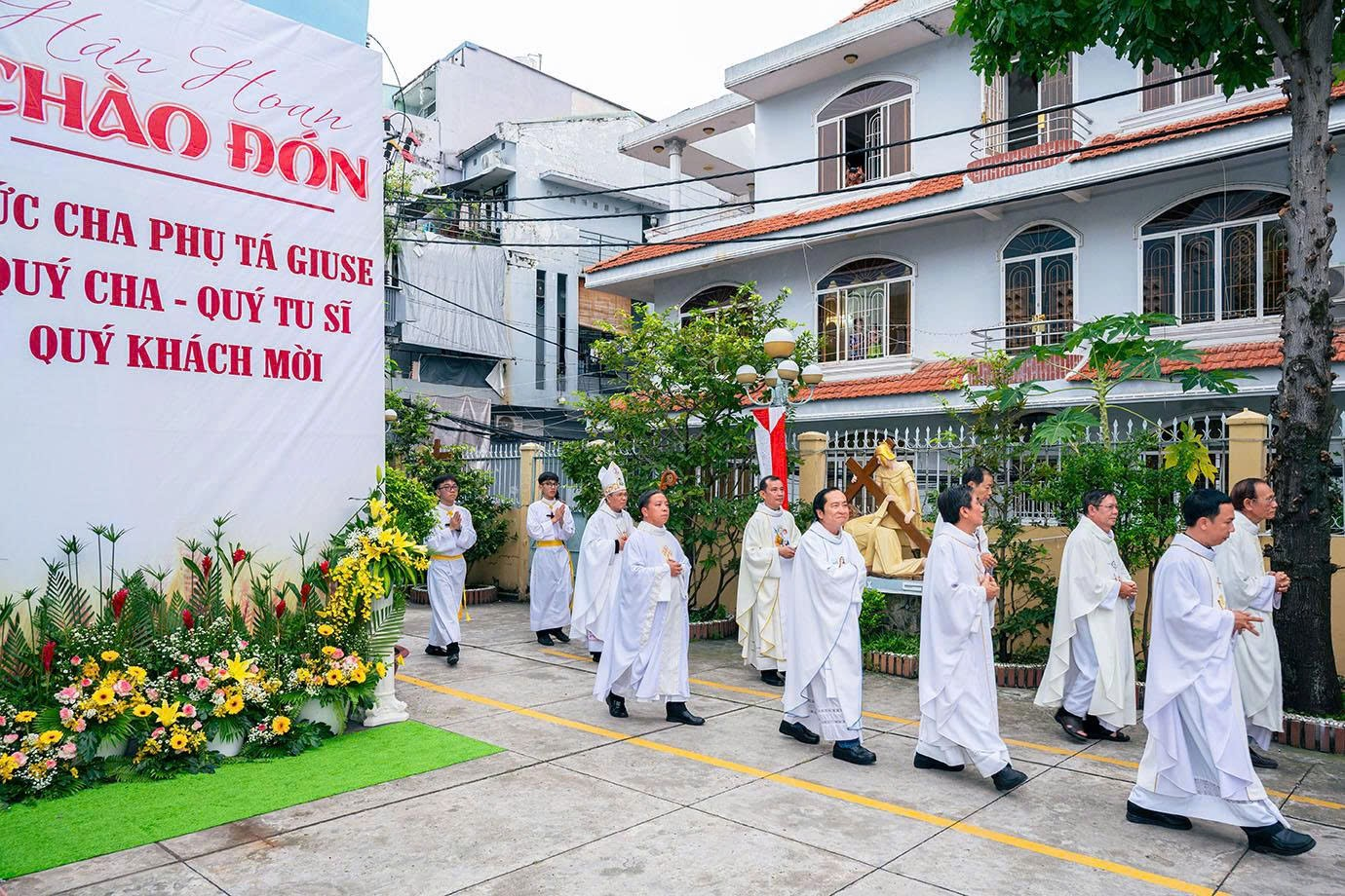 Nghi thức trao phó tiếp diễn: Đức cha Phụ tá Giuse trao chìa khóa nhà thờ và nhà tạm, dẫn cha tân chánh xứ đến ghế chủ tọa và tòa Giải tội. Sau cùng, cha tân chánh xứ mở cửa nhà tạm, xông hương và tôn thờ Thánh Thể.
