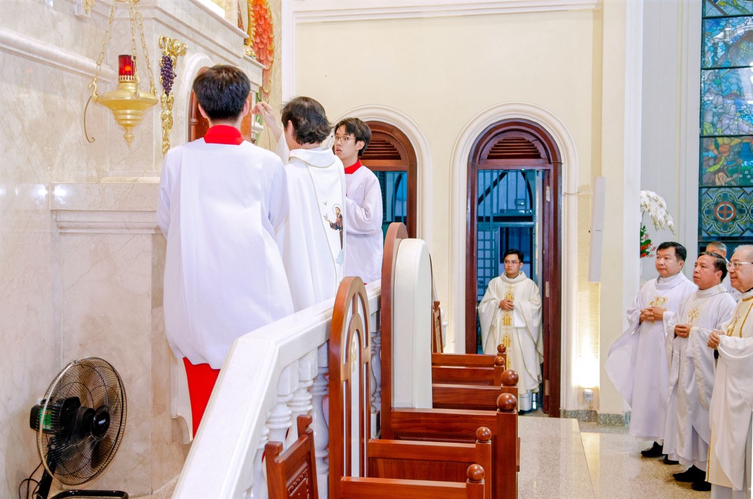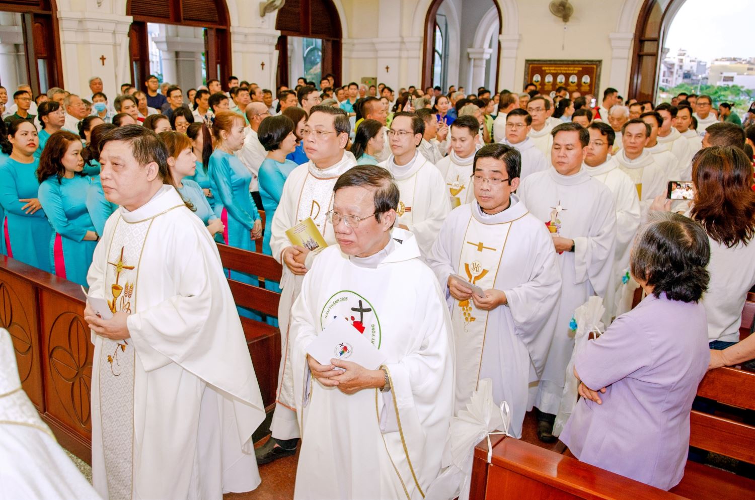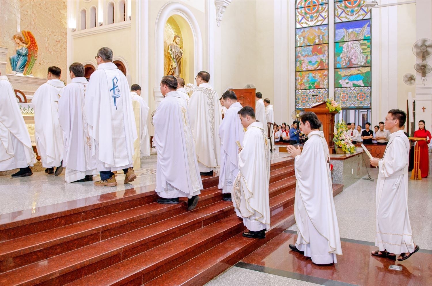Thánh lễ bắt đầu với đoàn rước đồng tế từ cuối nhà thờ tiến lên cung thánh.