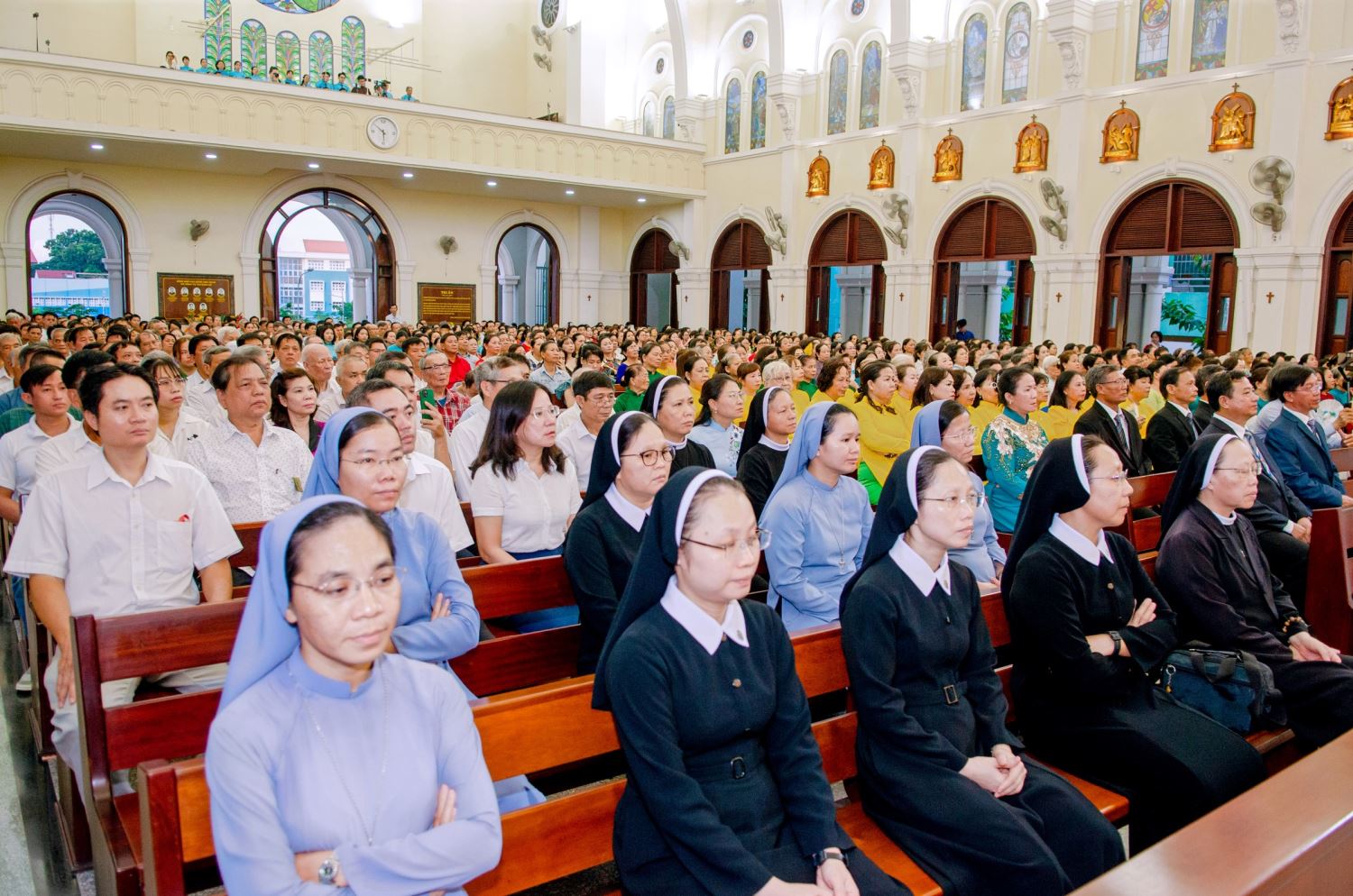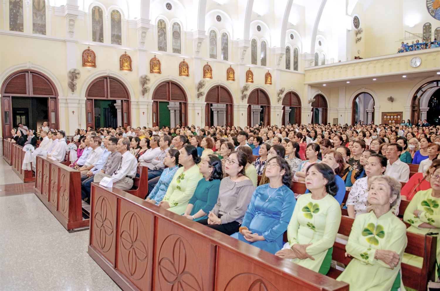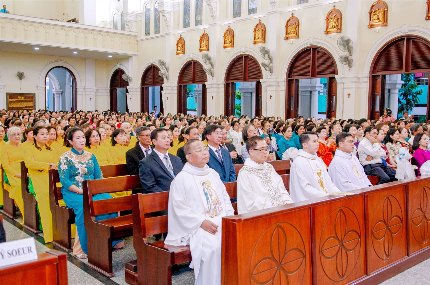 Tham dự Thánh lễ có các tu sĩ nam nữ, các ân nhân, thân nhân và giáo dân trong và ngoài giáo xứ, ngồi chật kín khuôn viên thánh đường.