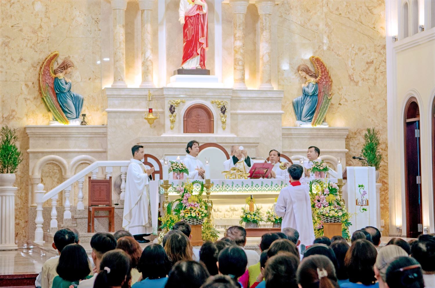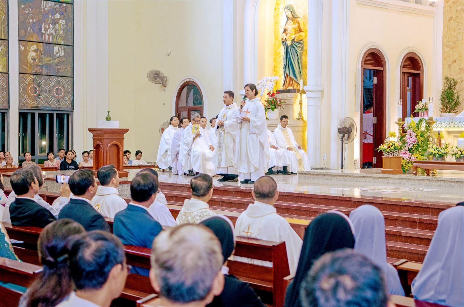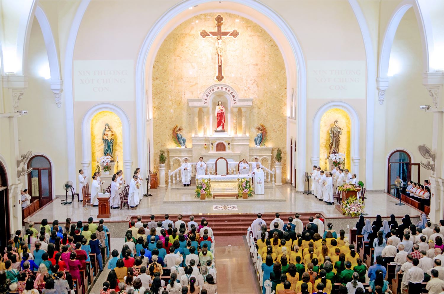Tham dự Thánh lễ có các tu sĩ nam nữ, các ân nhân, thân nhân và giáo dân trong và ngoài giáo xứ, ngồi chật kín khuôn viên thánh đường.