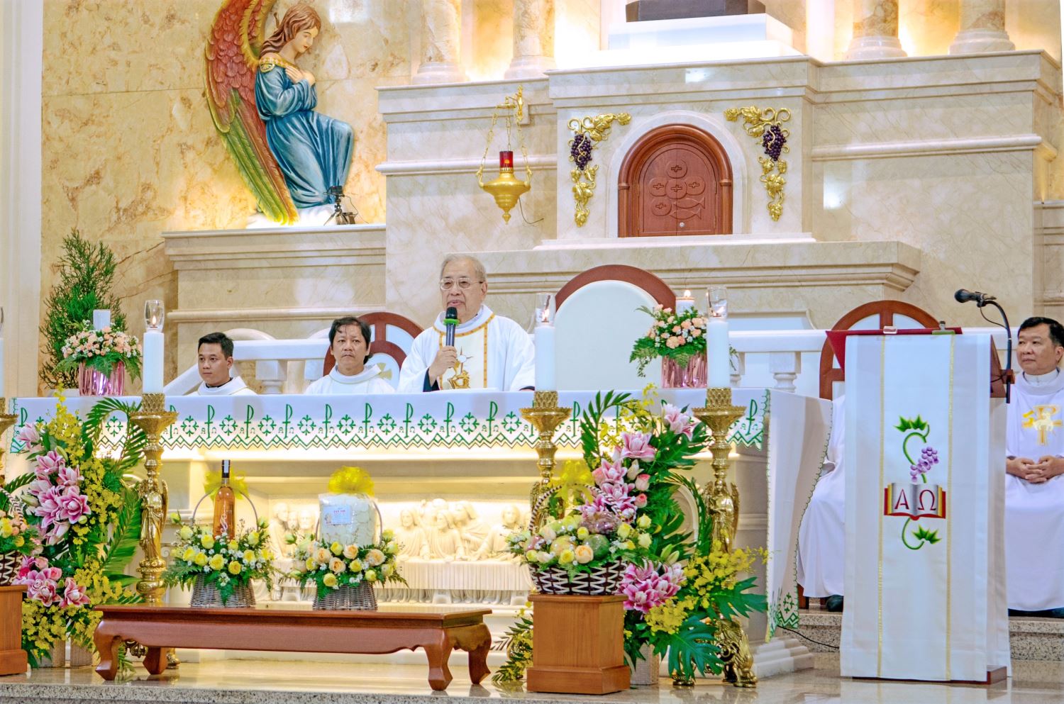 Tiếp đến, cha tân chánh xứ thay mặt cùng cha tân phó bày tỏ tâm tình tri ân: Ngài tạ ơn Thiên Chúa vì ơn gọi và sứ vụ, cảm ơn Đức Tổng Giám mục Giuse, Đức cha phụ tá đã tin tưởng sai phái, tri ân cha Tổng Đại diện Inhaxiô luôn quan tâm, nâng đỡ. Ngài nhắc đến công lao quý cha tiền nhiệm, đặc biệt cha Đa Minh Đặng Quốc Hưng đã để lại cho giáo xứ một ngôi thánh đường khang trang và nền tảng đức tin vững chắc. Ngài cũng cảm ơn quý ân nhân, thân nhân và cộng đoàn đã hiệp thông, cầu nguyện.