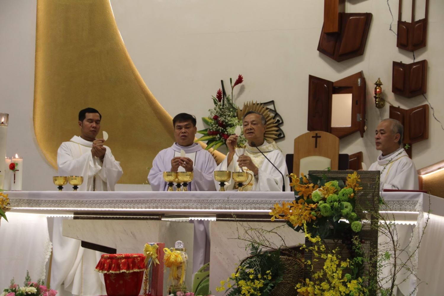 Thánh lễ do linh mục (Lm) chánh xứ Đaminh Vũ Ngọc Thủ chủ tế, đồng tế với ngài là Lm Phêrô Đỗ Khắc Minh Khoa (giảng lễ) và các linh mục thân quen.