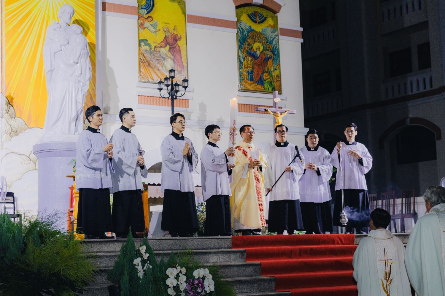 TGPSG -- Trong bầu khí linh thiêng tràn đầy hy vọng của Đêm Vọng Phục Sinh, vào lúc 20g ngày 04.04.2026, Đại Chủng Viện Thánh Giuse Sài Gòn đã long trọng cử hành Thánh lễ Vọng Phục Sinh, do linh mục Giuse Đỗ Xuân Vinh - Giám đốc Đại Chủng viện, chủ tế. Đồng tế với ngài có các linh mục trong Ban Đào tạo, cùng với sự tham dự đông đảo các tu sĩ và cộng đoàn tín hữu, ngồi chật kín khuôn viên.