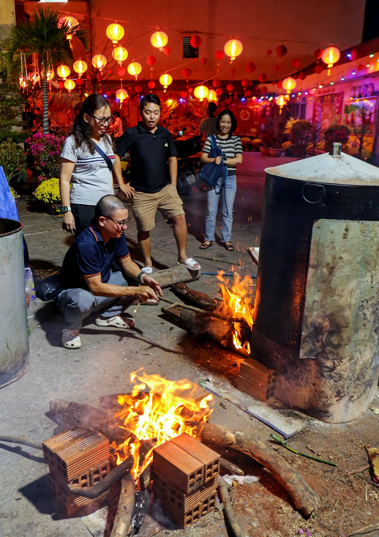 Khi đêm xuống, những câu chuyện bên nồi bánh chưng đang sôi lửa hồng trở thành những khoảnh khắc thân tình nhất. Đó là lúc nghĩa huynh đệ được thắt chặt giữa những người đang chung chia sứ mạng giáo dục đức tin cho các em thiếu nhi. Dẫu ai cũng thấm mệt, có người lim dim vì thiếu ngủ, nhưng bầu khí nơi sân nhà thờ vẫn ấm lên bởi ánh lửa bập bùng và bởi niềm vui được phục vụ. Nhìn nồi bánh chưng nghi ngút khói giữa không gian giáo xứ, lòng người bỗng thấy ấm áp hơn, cảm nhận rõ Tết Việt đang rất gần và nhận ra sự quan phòng, chở che đầy yêu thương của Thiên Chúa.