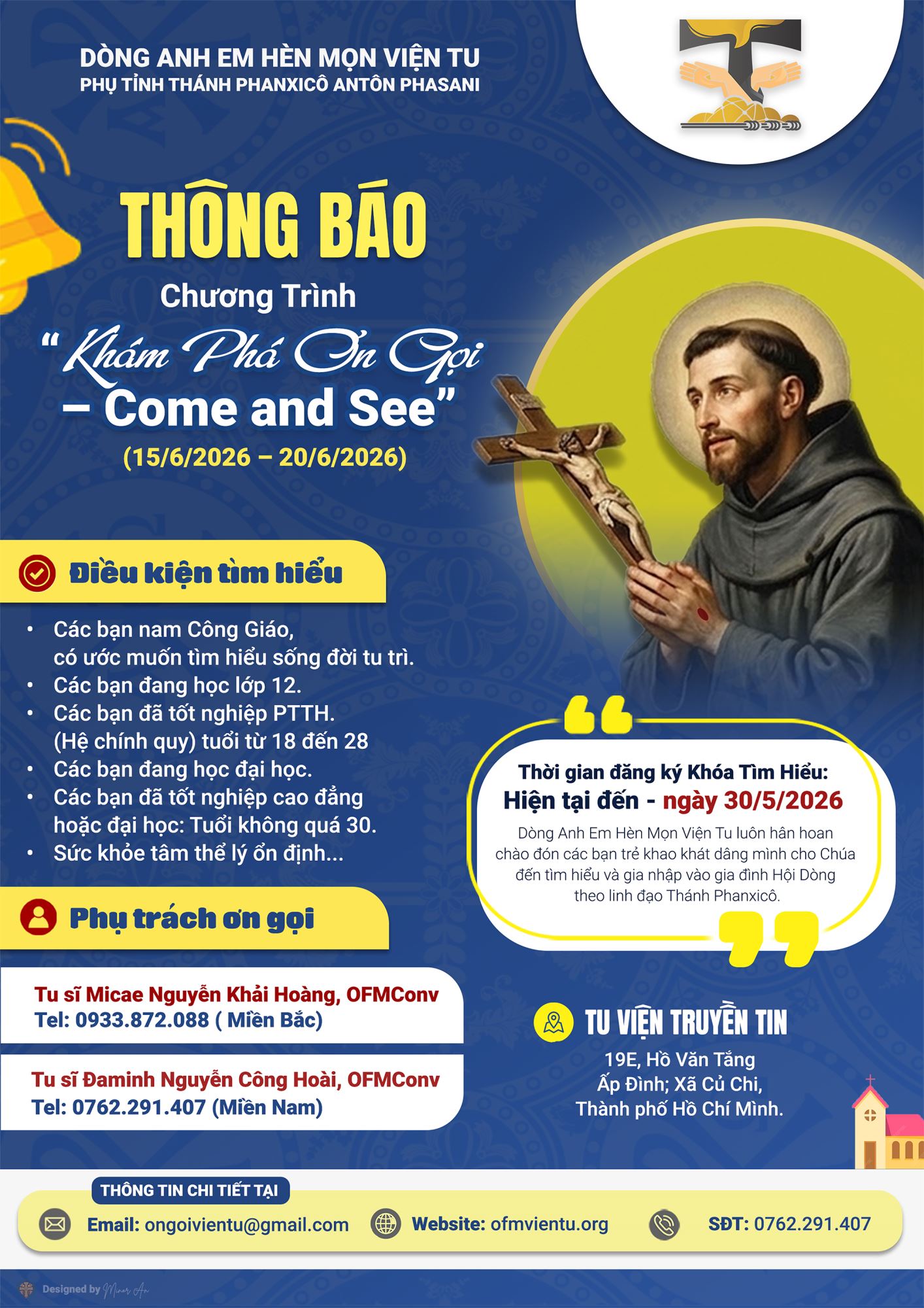 Mọi chi tiết, xin liên hệ: Tu sĩ Micae Nguyễn Khải Hoàng OFMConv.