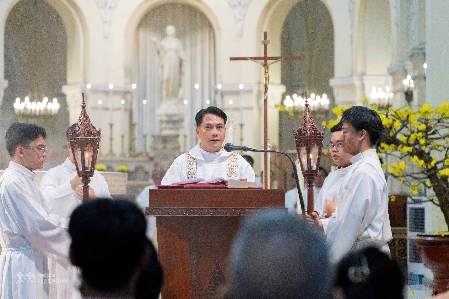 TGPSG - Chiều và tối ngày 16-02-2026 (29 Tết), Tổng Giáo phận Sài Gòn đã cử hành Thánh lễ Giao thừa tại hai địa điểm: Nhà nguyện Emmau - Trung tâm Mục vụ TGP Sài Gòn và Nhà thờ Chính tòa Đức Bà Sài Gòn, quy tụ đông đảo dân Chúa hiệp thông tạ ơn cuối năm và phó dâng năm mới Bính Ngọ trong đức tin.