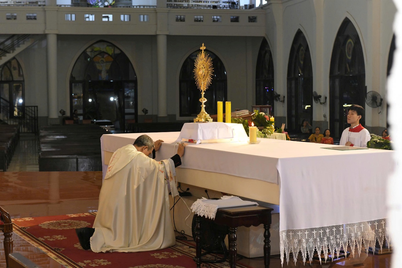 Trong buổi chầu chung ngày lễ kính các Thánh tử đạo Việt Nam - Bổn mạng giáo xứ - ĐGM Giuse Bùi Công Trác đã hiện diện và long trọng ban phép lành Thánh Thể trong bầu khí thánh thiêng của việc tôn thờ Chúa Giêsu Thánh Thể. Sự hiện diện của vị mục tử là lời mời mọi Kitô hữu: đáp lại tiếng Chúa đang cất lên nơi mỗi người, như ngôn sứ Isaia xưa: “Lạy Chúa, con đây, xin hãy sai con.”