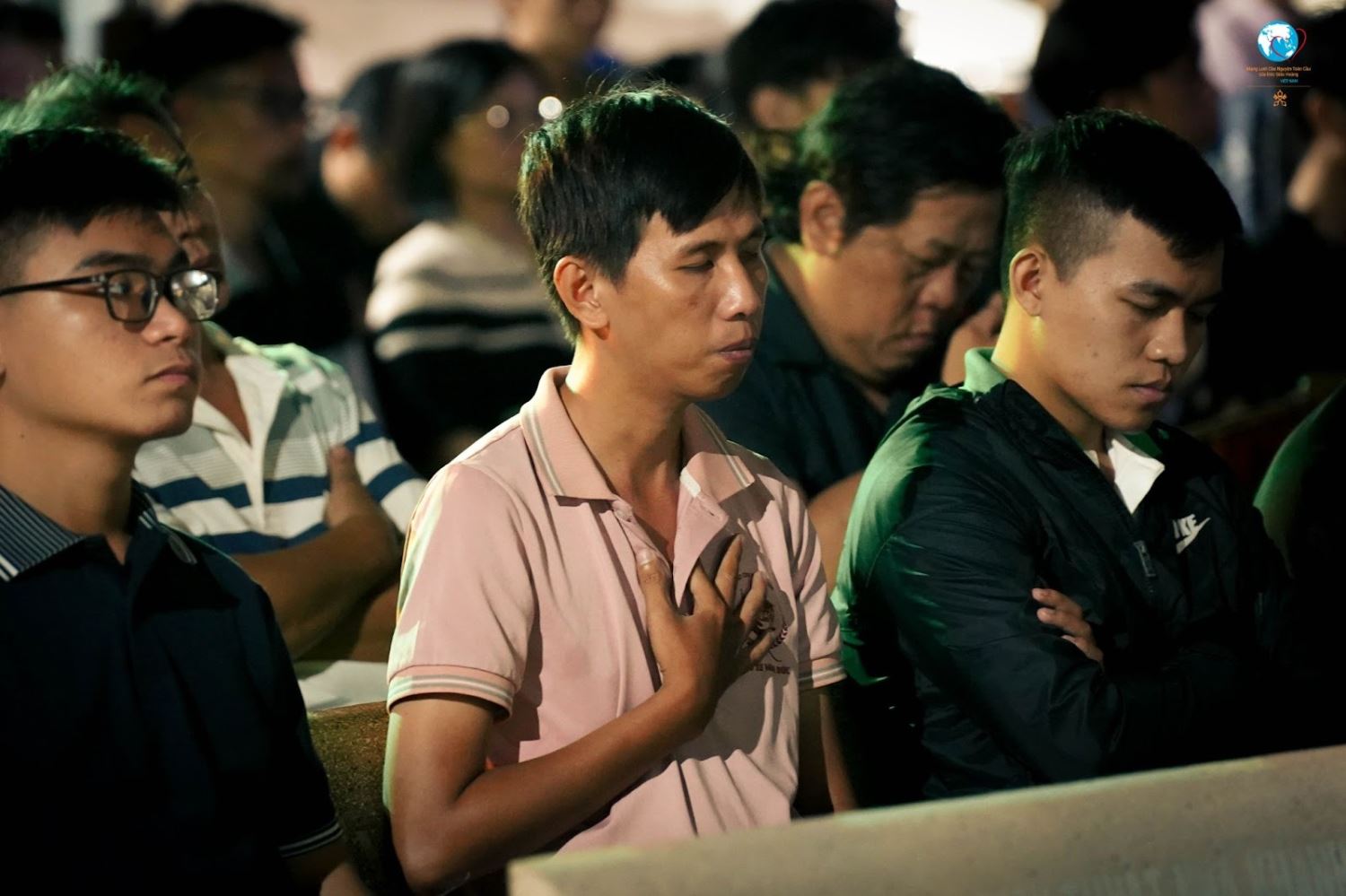 Chương trình bắt đầu lúc 19 giờ với phần Cầu nguyện – Hồi tâm với Thánh ca, do Nhóm Hợp xướng Lumen phụ trách. Bầu khí tâm tình được dẫn vào qua đoạn trích Phúc Âm Gioan (16,29-33): “Trong thế gian, anh em sẽ phải gian nan khốn khó. Nhưng can đảm lên! Thầy đã thắng thế gian.”