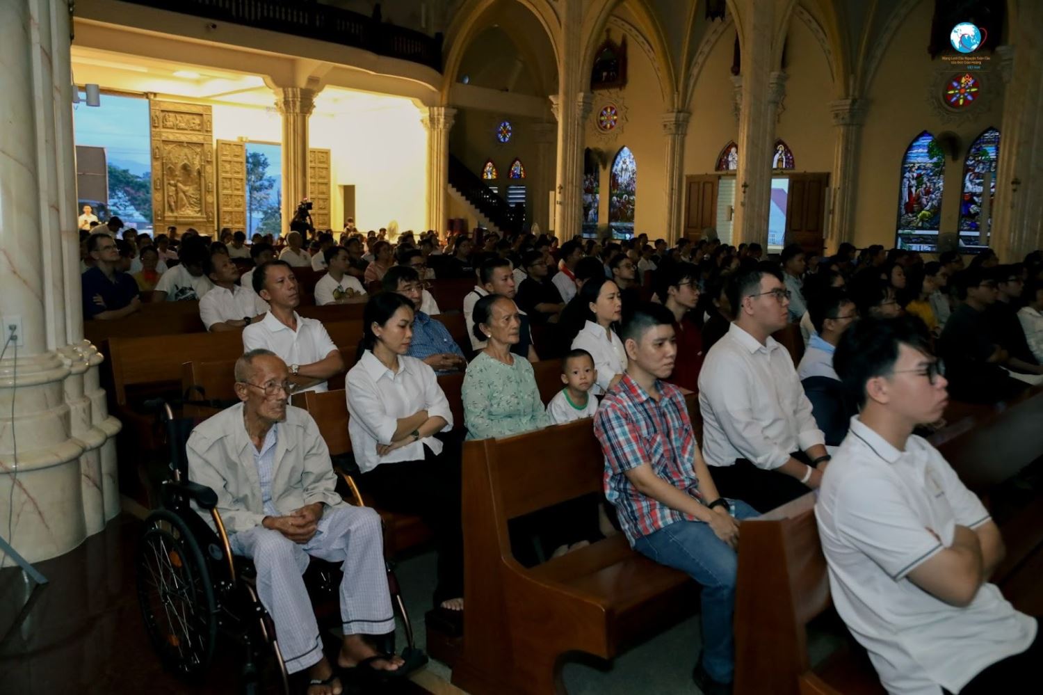 Nhà thờ Song Vĩnh, với vẻ đẹp nguy nga và diễm lệ, là một trong những công trình tiêu biểu của Giáo phận Bà Rịa. Kiến trúc Gothic tinh xảo, những tháp vươn cao và ánh sáng len qua khung kính màu khiến người bước vào có cảm giác như lạc giữa một “trời Âu thu nhỏ”. Chính tại ngôi thánh đường lộng lẫy này, cộng đoàn đã cùng nhau sống một buổi tối tràn đầy đức tin và hy vọng.