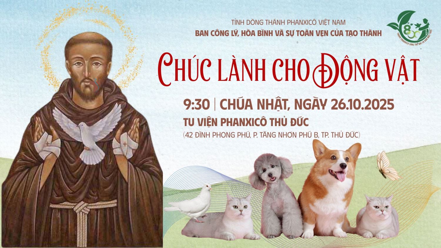 Ban JPIC sẽ tổ chức thêm buổi chúc lành thứ hai vào Chúa nhật, ngày 26.10.2025, tại Tu viện Phanxicô Thủ Đức, 42 Đình Phong Phú, P. Tăng Nhơn Phú B, TP. Thủ Đức (Quận 9 cũ). Người tham dự có thể mang theo động vật, thú cưng và đăng ký tham dự tại đây.