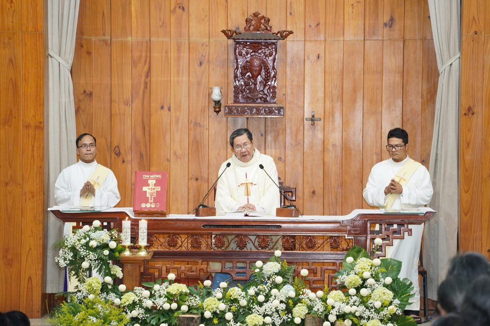 Đồng tế với ngài có linh mục Giuse Phạm Văn Bình - Phó Giám tỉnh Dòng Anh Em Hèn Mọn cùng gần 30 linh mục thuộc Dòng Phanxicô.